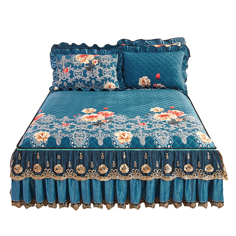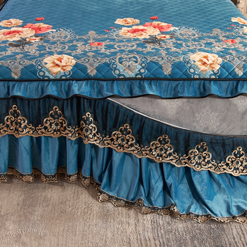 可拆洗水晶绒欧式蕾丝冬天床裙