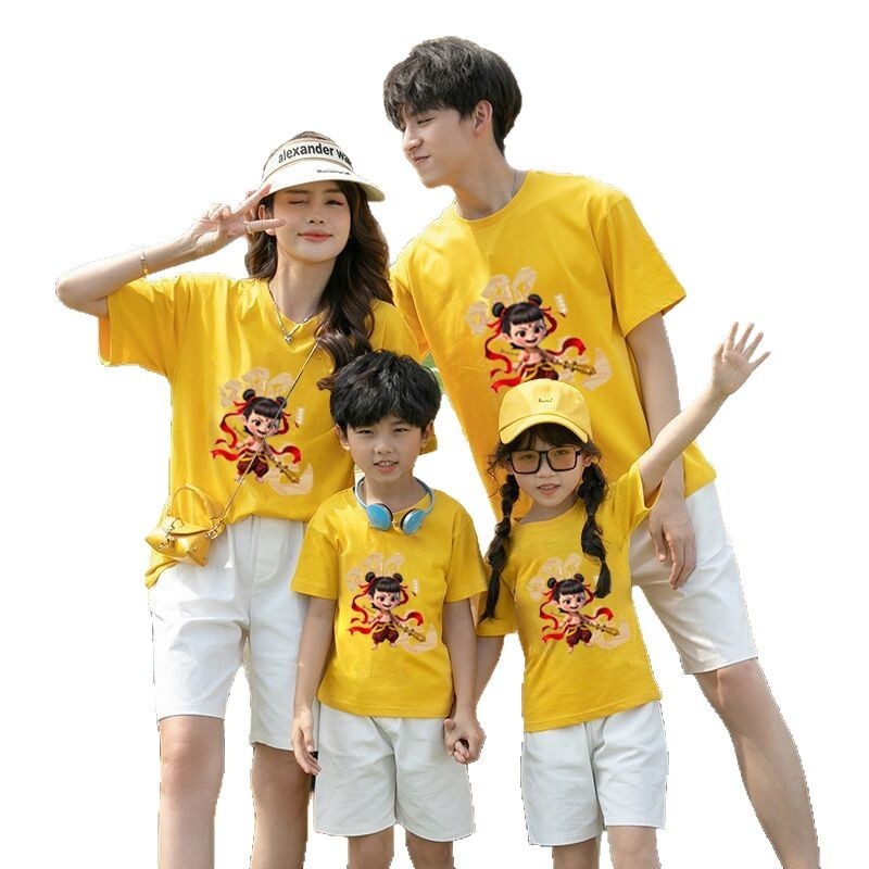 2025新款哪吒夏季纯棉炸街中大童儿童夏装潮一家四口亲子装