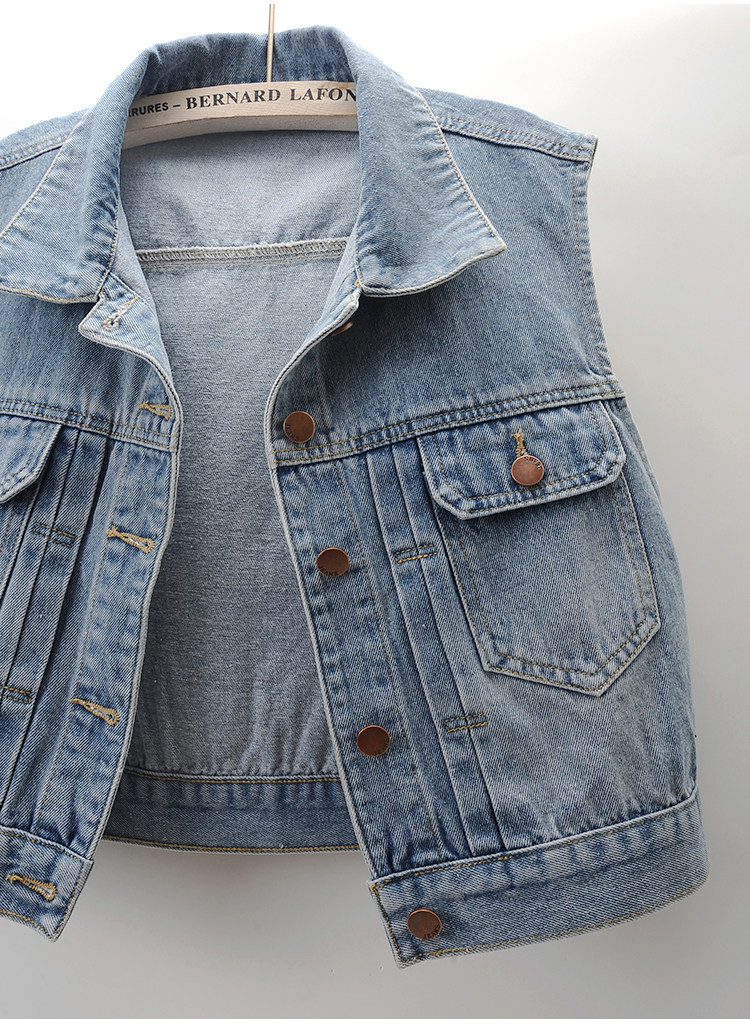2025春夏季新款百搭无袖牛仔马甲女士短款外搭小背心坎肩上衣夹克