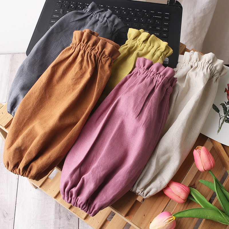纯色亚麻套袖女冬季长款家居工作防脏袖女士办公室护袖宝宝袖套男