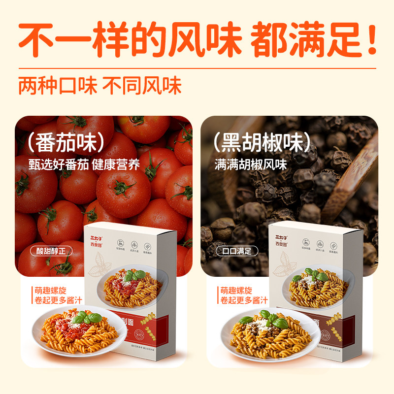 螺旋意大利面经典黑椒番茄肉酱包早餐拌面家用盒装儿童意面速食餐