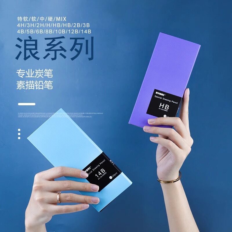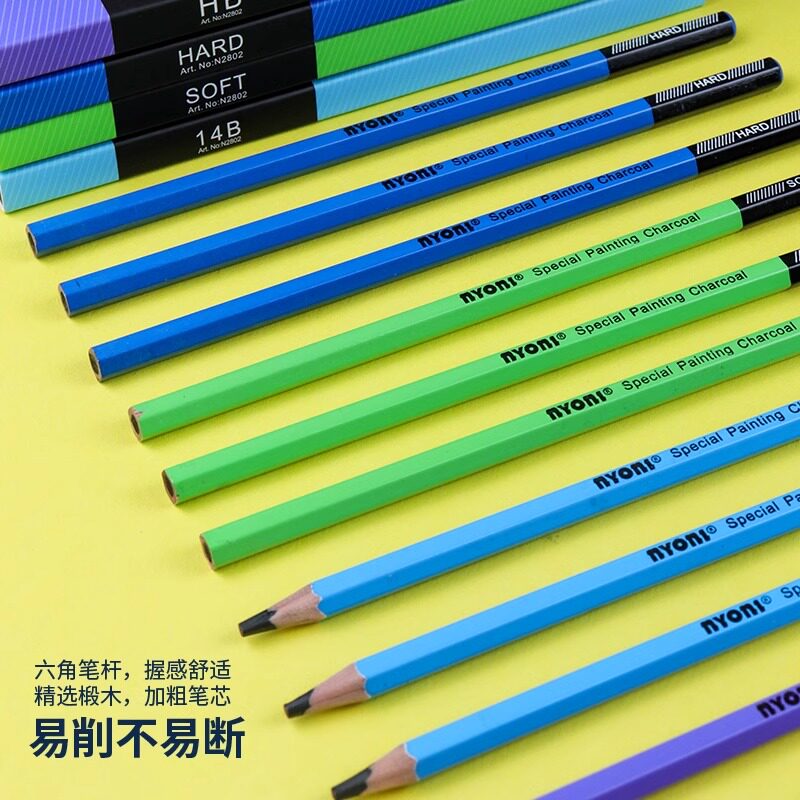 尼奥尼2802浪系列炭笔素描铅笔速写笔初学者美术生专用软中硬碳笔小学生儿童书写铅笔2H HB 2b 4b 8b 12b 14b