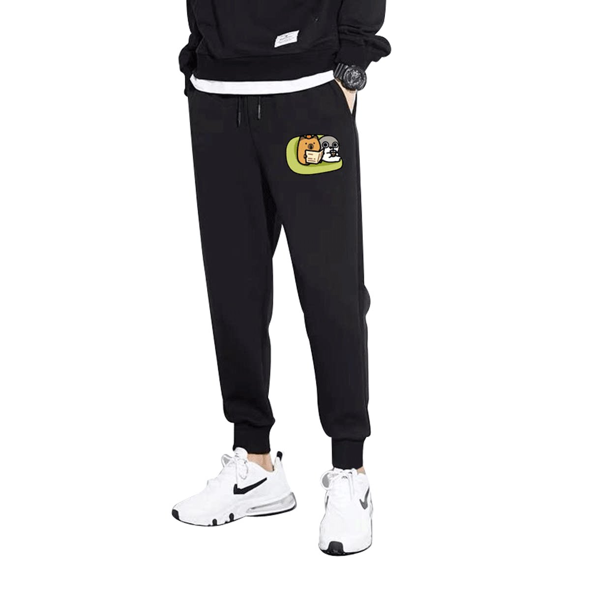 萨卡班甲鱼联名卡皮巴拉动漫周边男女情侣秋冬定制束口卫裤子长裤