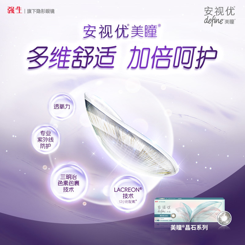 【10片】强生美瞳安视优日抛隐形眼镜晶石彩色自然正品水凝胶官方