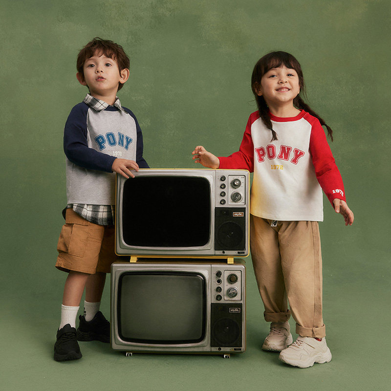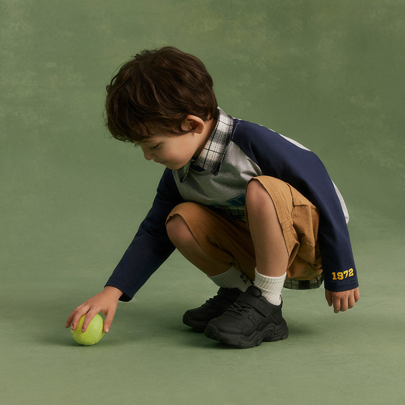 PONY男女童同款年复古老爹鞋黑色舒适休闲运动鞋233K1MD51