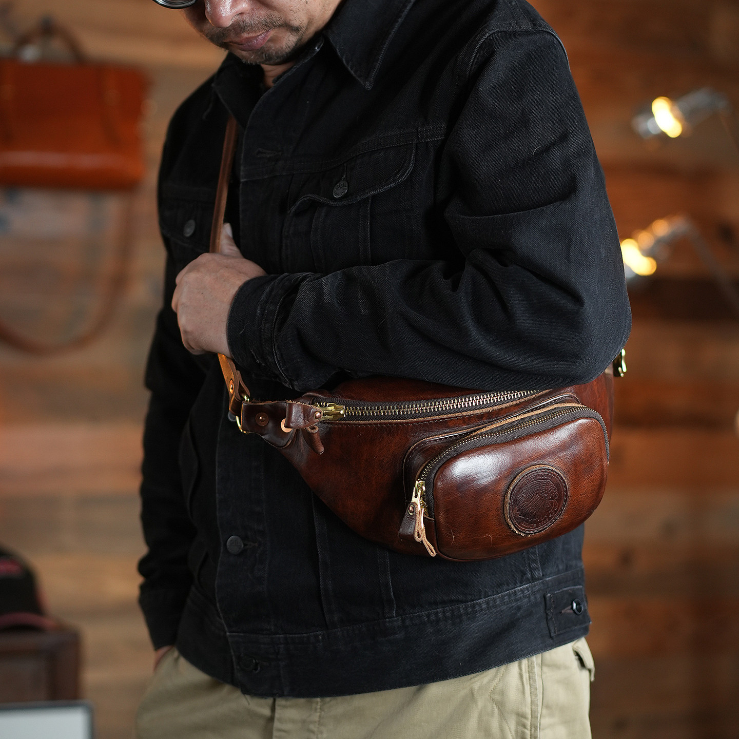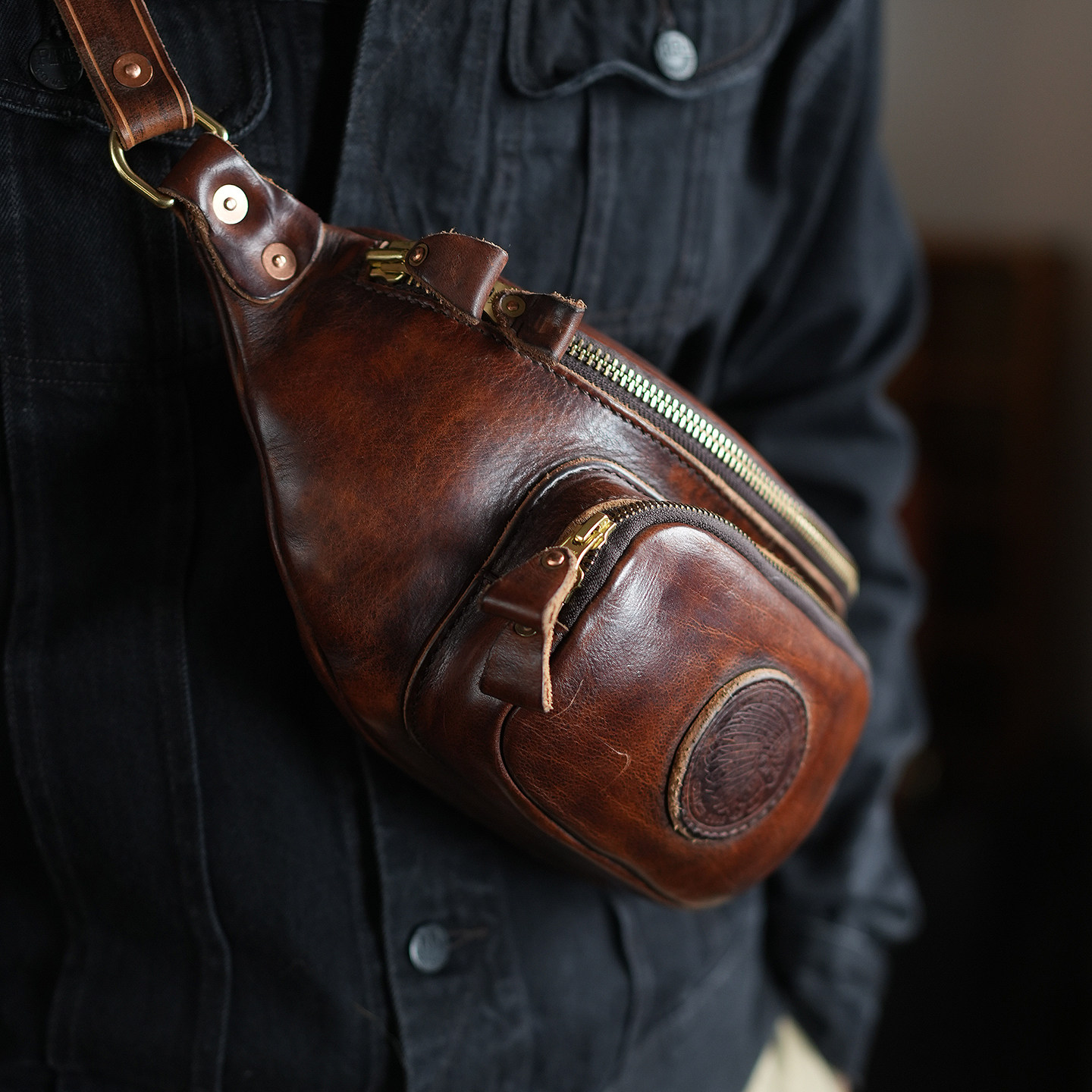 牛爷复古风真皮胸包男士斜挎包休闲户外机车腰包棕色