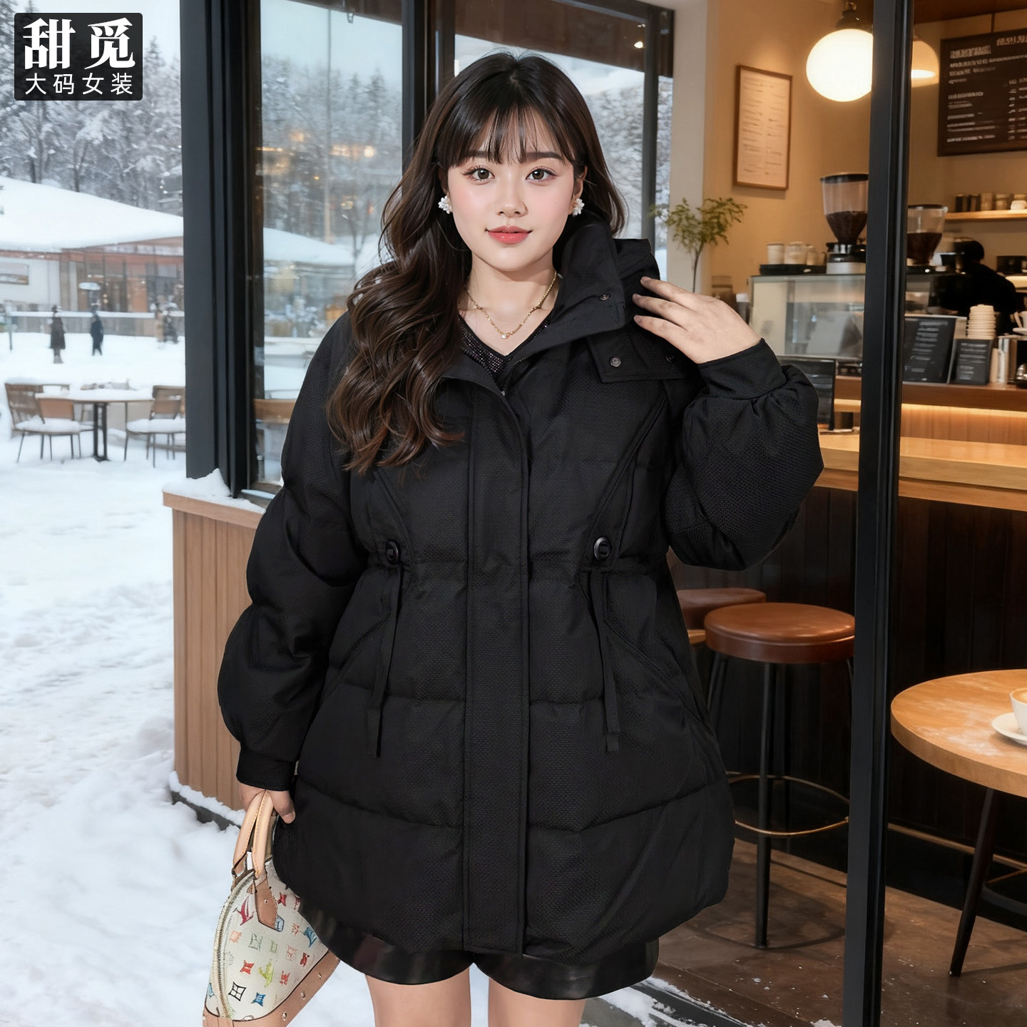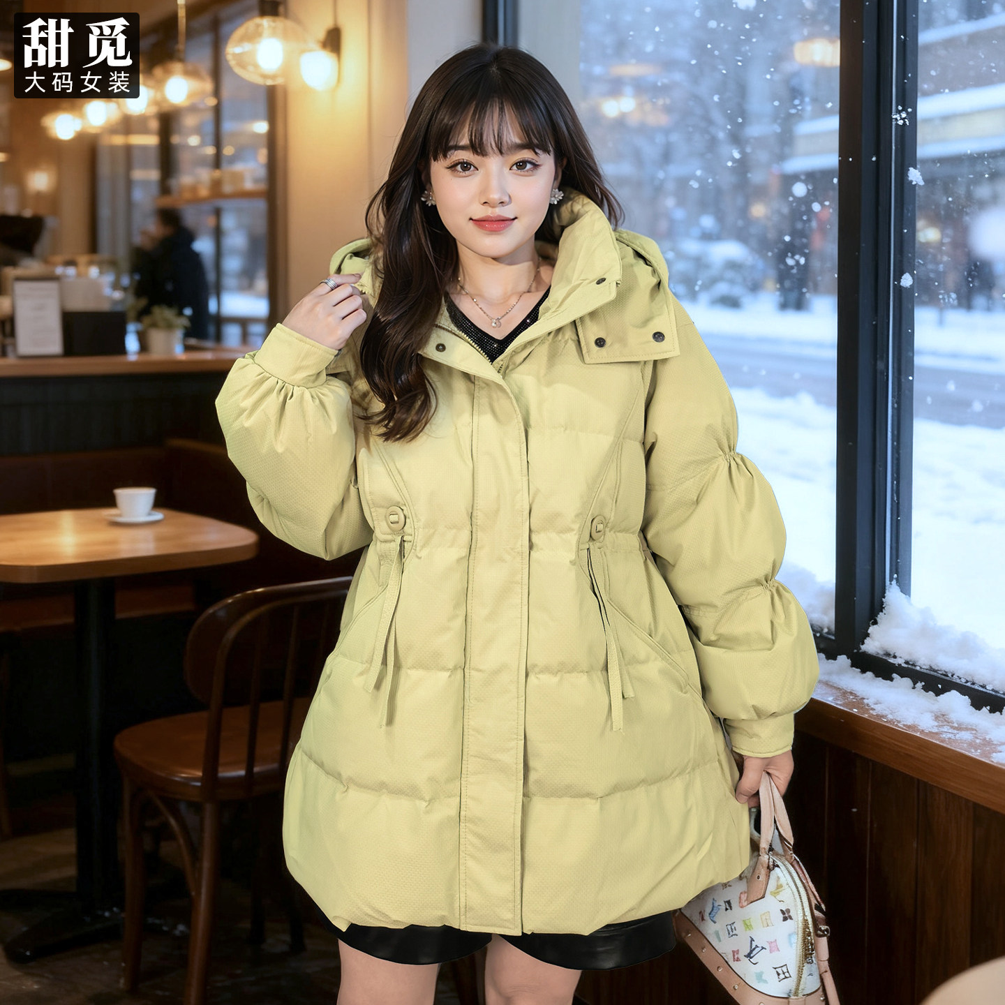 甜觅特大码女装冬装胖mm300斤淑女气质中长款宽松连帽保暖羽绒服
