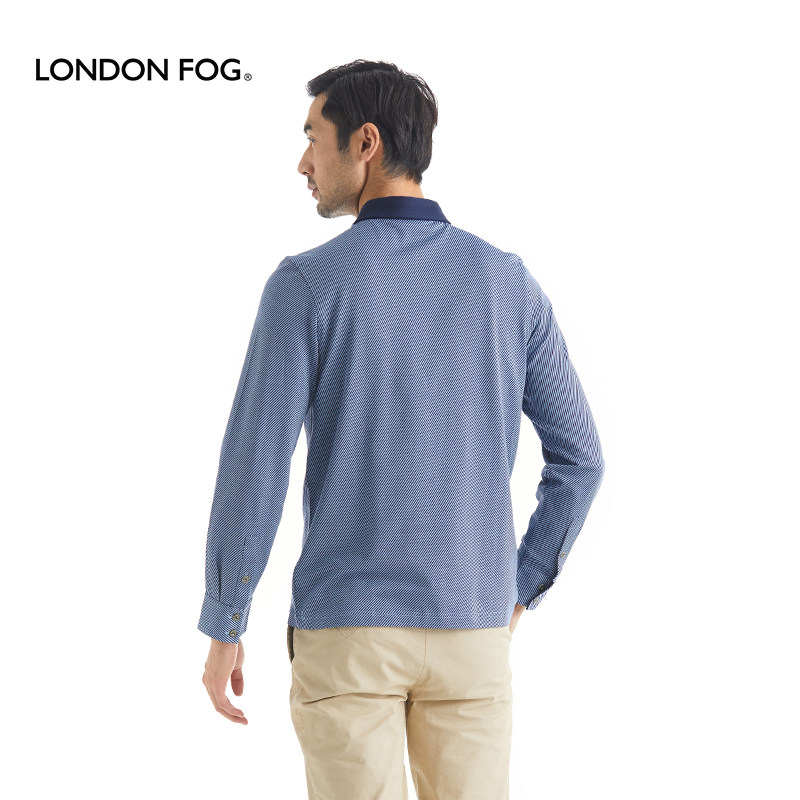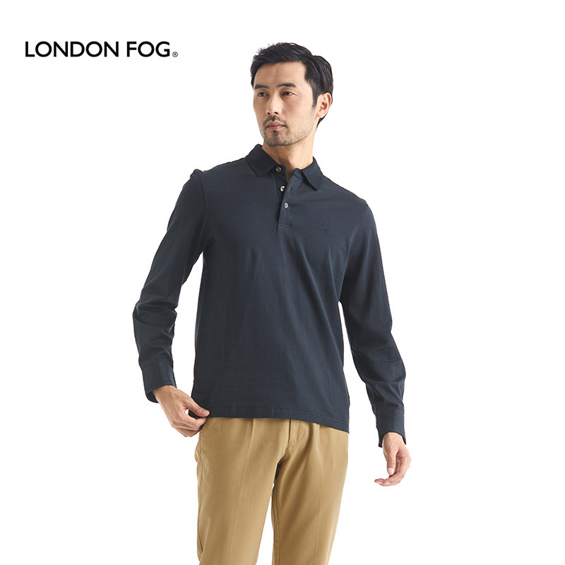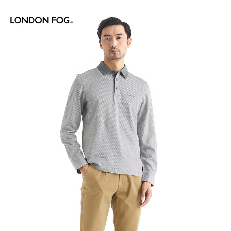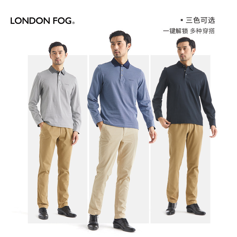 伦敦雾男士秋季潮款商务休闲拼接领丝光棉长袖T恤衫翻领Polo上衣