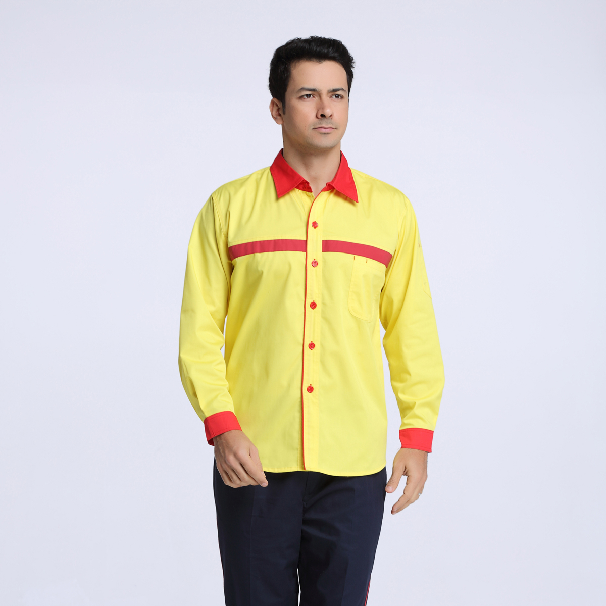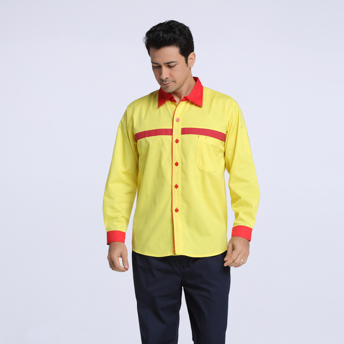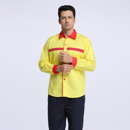 夏季防静电长袖工作服工厂车间黄色薄款工装液化气燃气劳保服套装