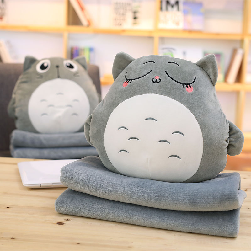 龙猫抱枕被子两用毯子靠枕三合一抱枕毯空调午睡枕汽车靠垫捂枕头