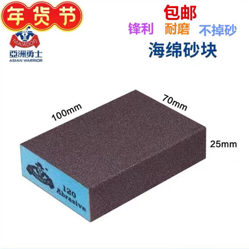 蓝色勇士海绵砂块砂纸木工油漆金属除锈打磨抛光金刚砂磨块砂砖