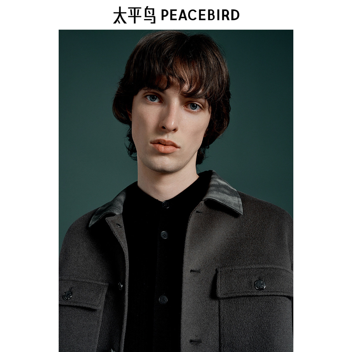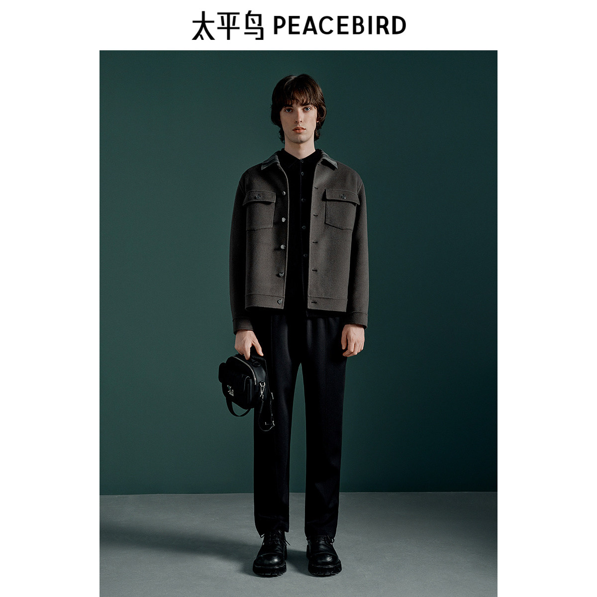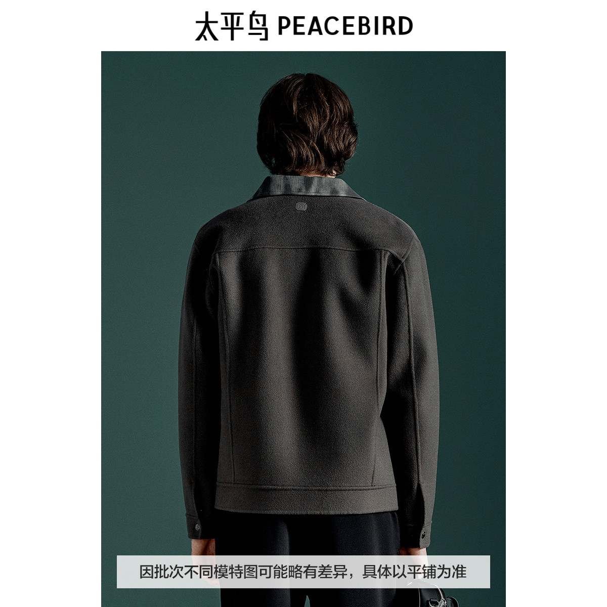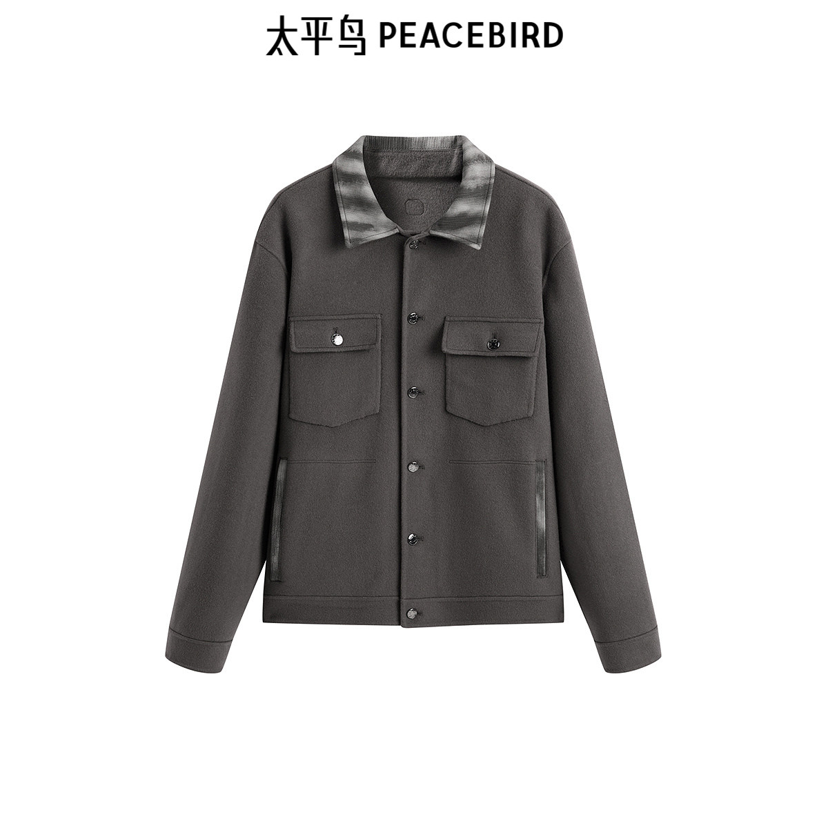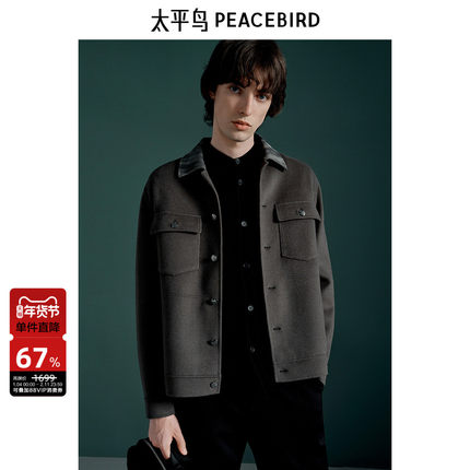 太平鸟男装 毛呢短款外套男翻领保暖双面呢冬季拼接夹克男