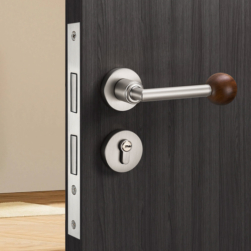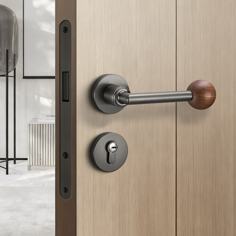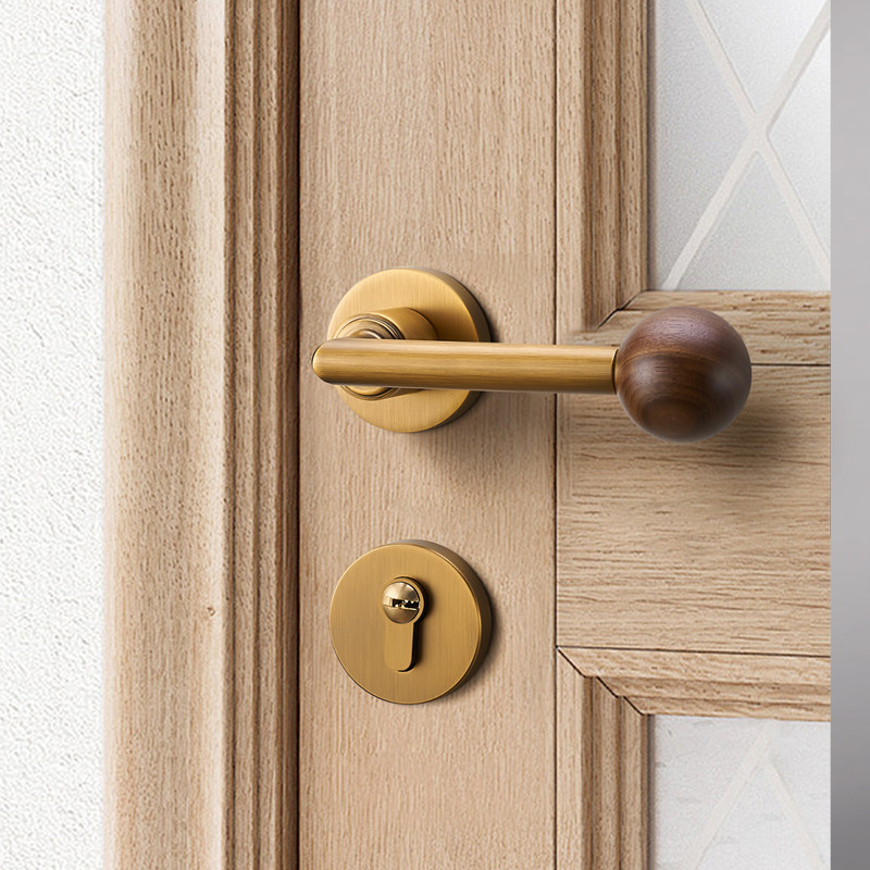 门锁室内卧室原木风家用静音实木房胡桃木中古风复古木质门锁把手