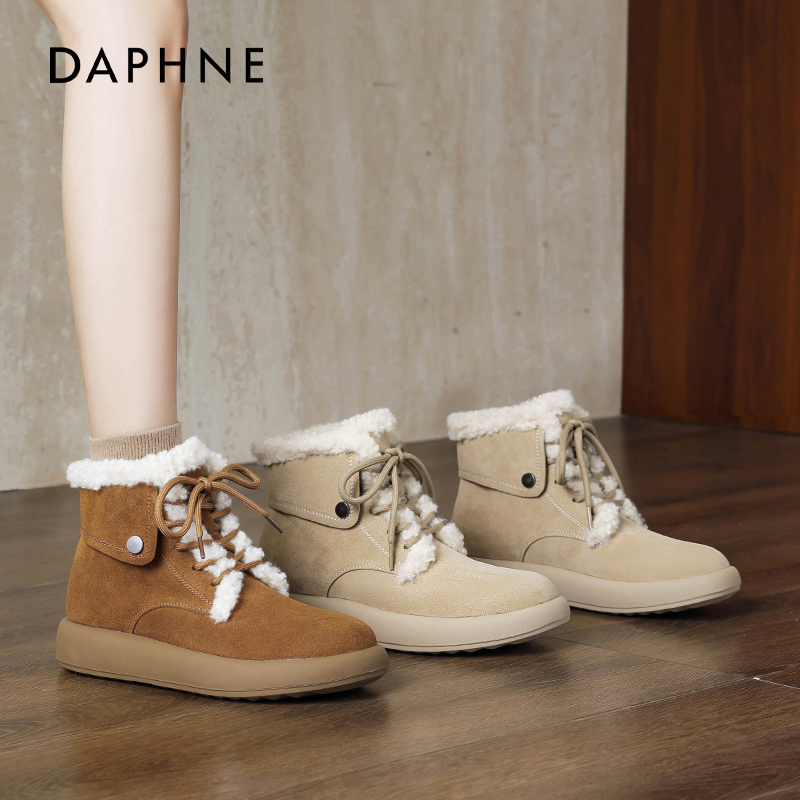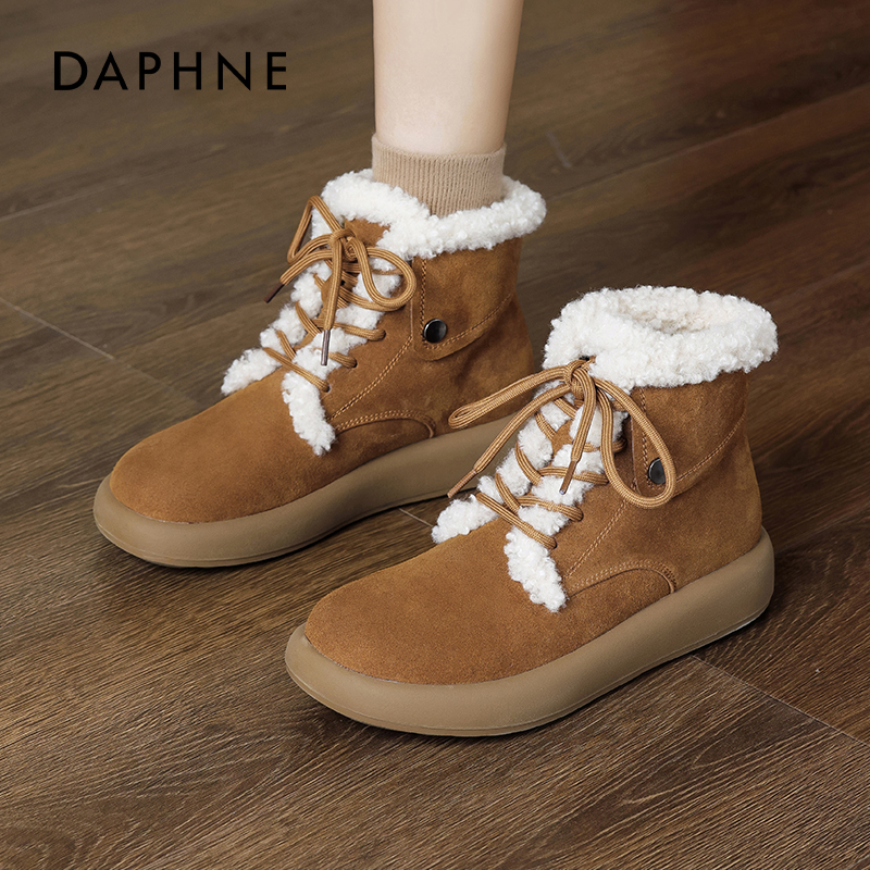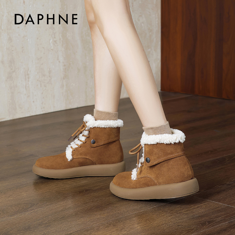 达芙妮厚底雪地靴女2025新款秋冬加绒西部马丁靴保暖棉鞋勃肯短靴