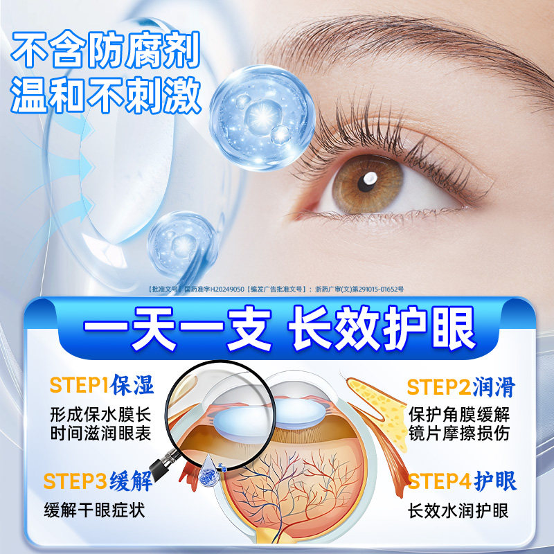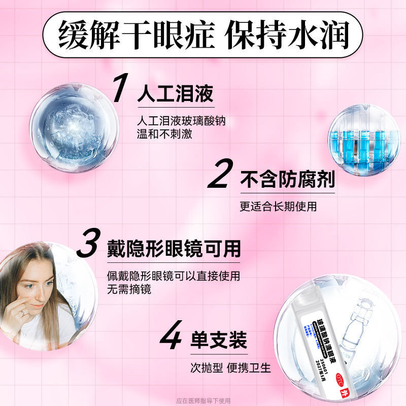 玻璃酸钠滴眼液眼药水人工泪液缓解干眼症一次性次抛隐形眼镜可用