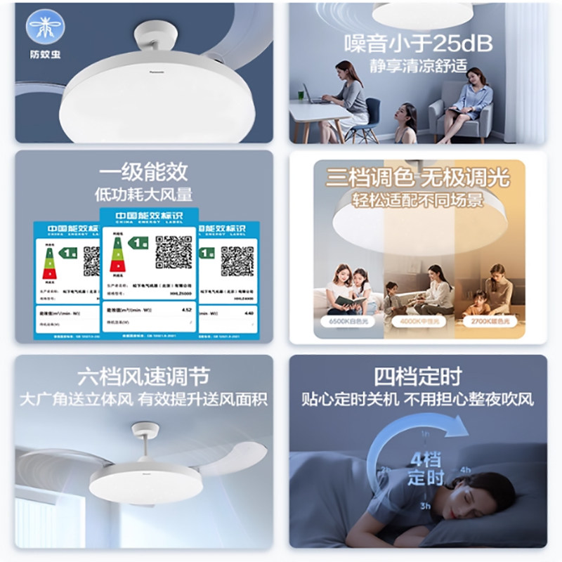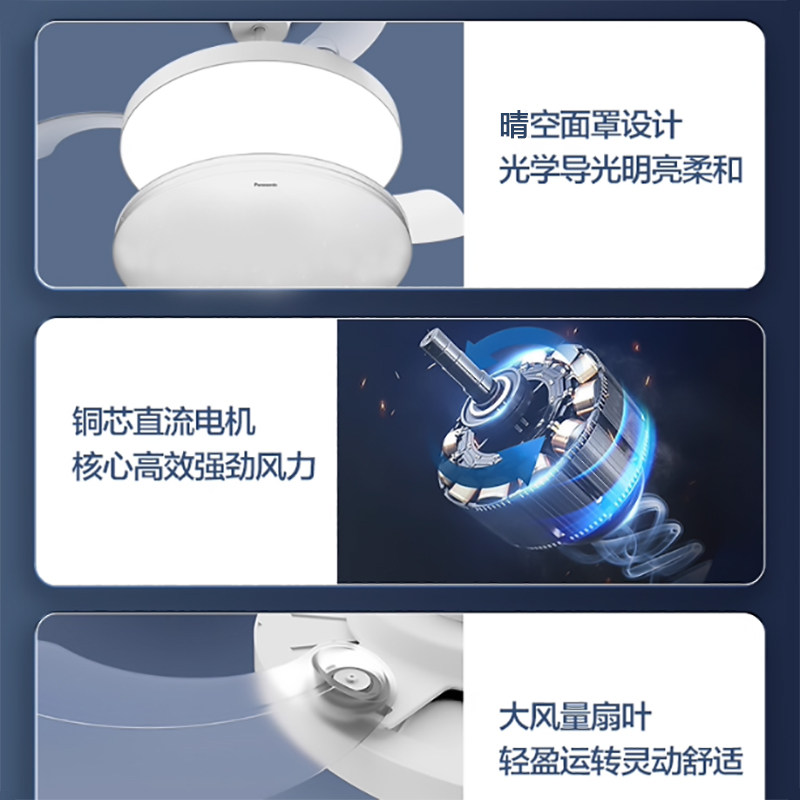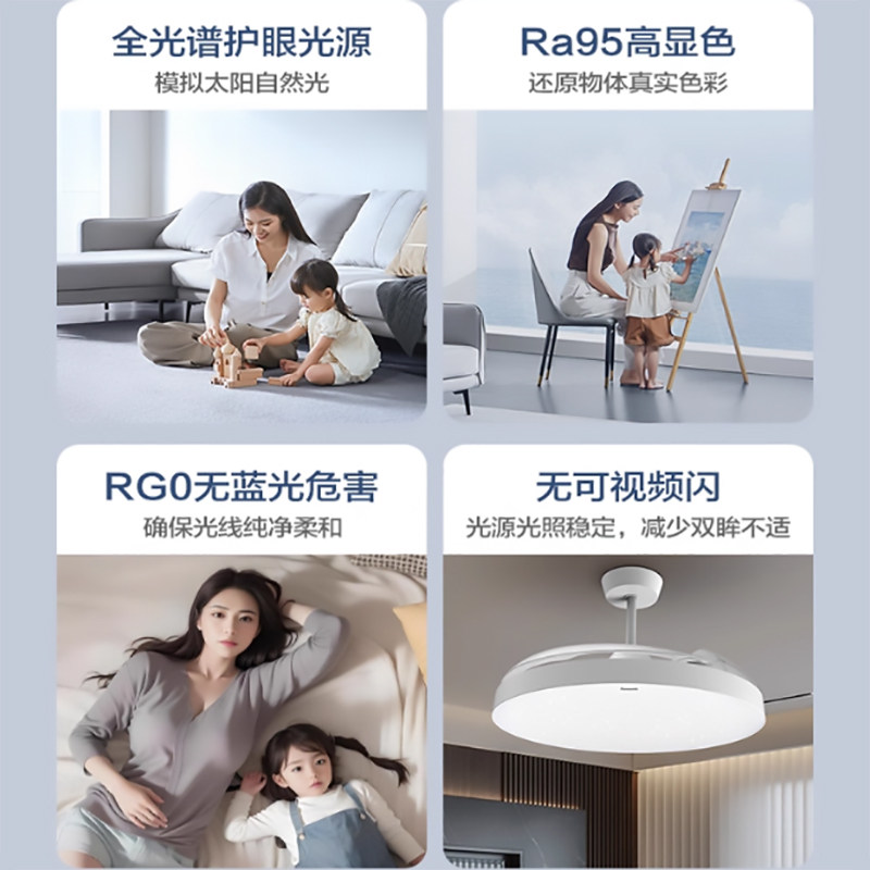 松下隐形风扇灯新款吊扇灯全光谱客厅餐厅卧室简约现代吸顶电扇灯