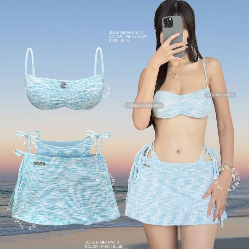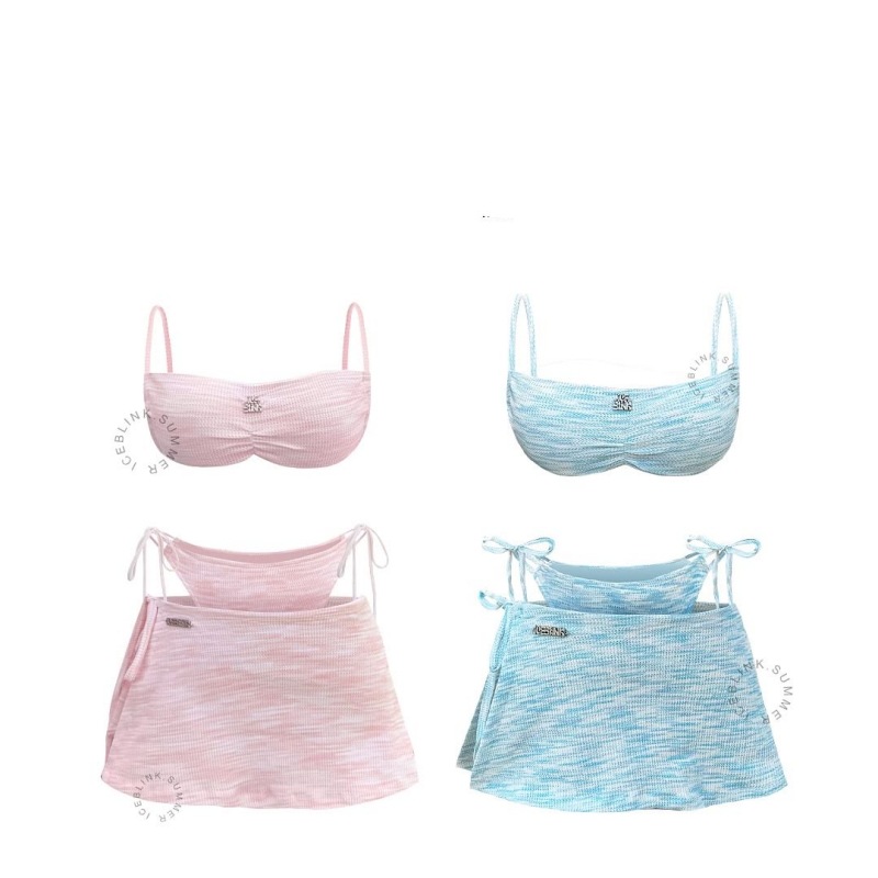 新款纯欲风比基尼性感美背大小胸聚拢分体裙式度假风泳衣女三件套