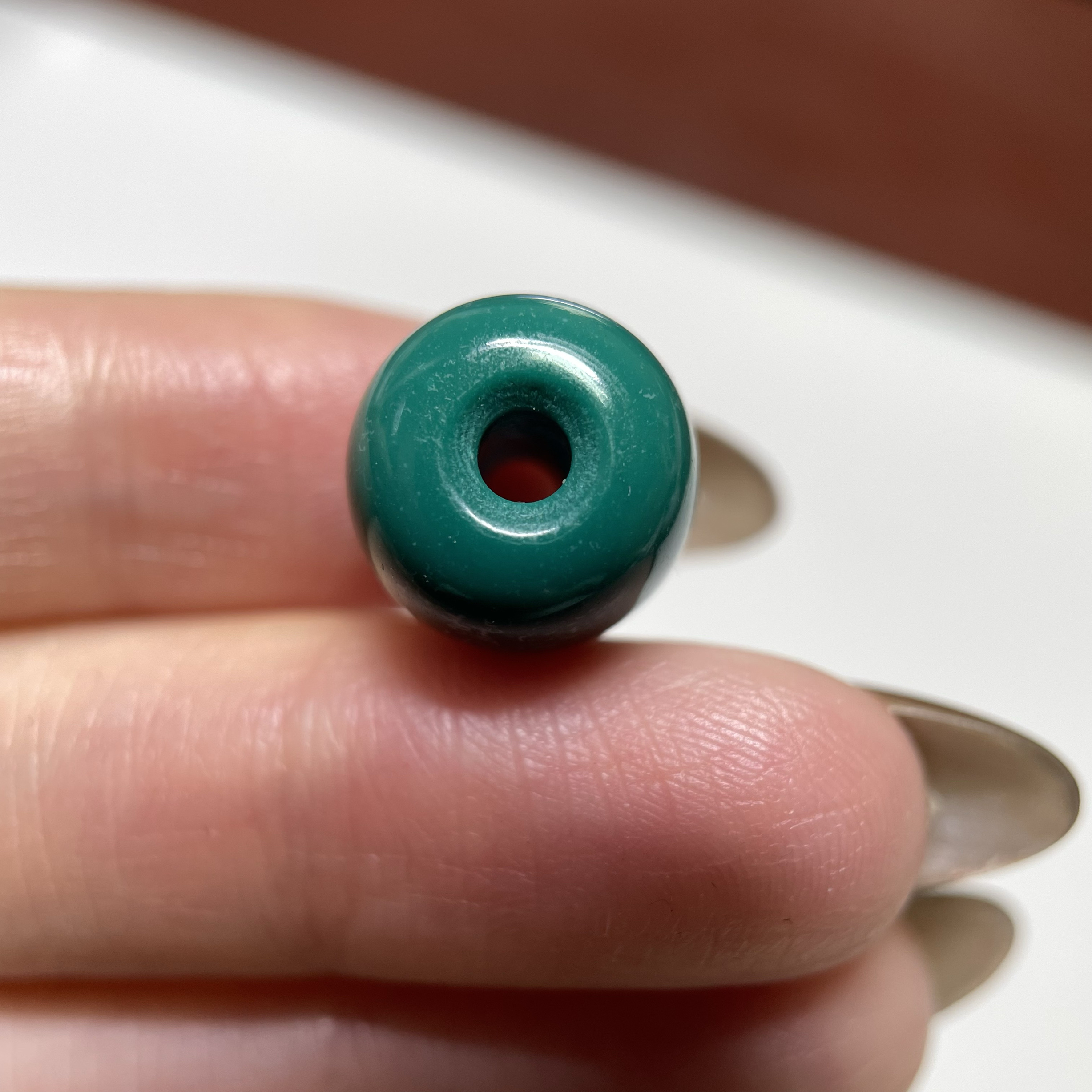 西藏油绿老型绿松石桶珠12.3mm 念珠手串星月紫檀多宝配珠单珠119