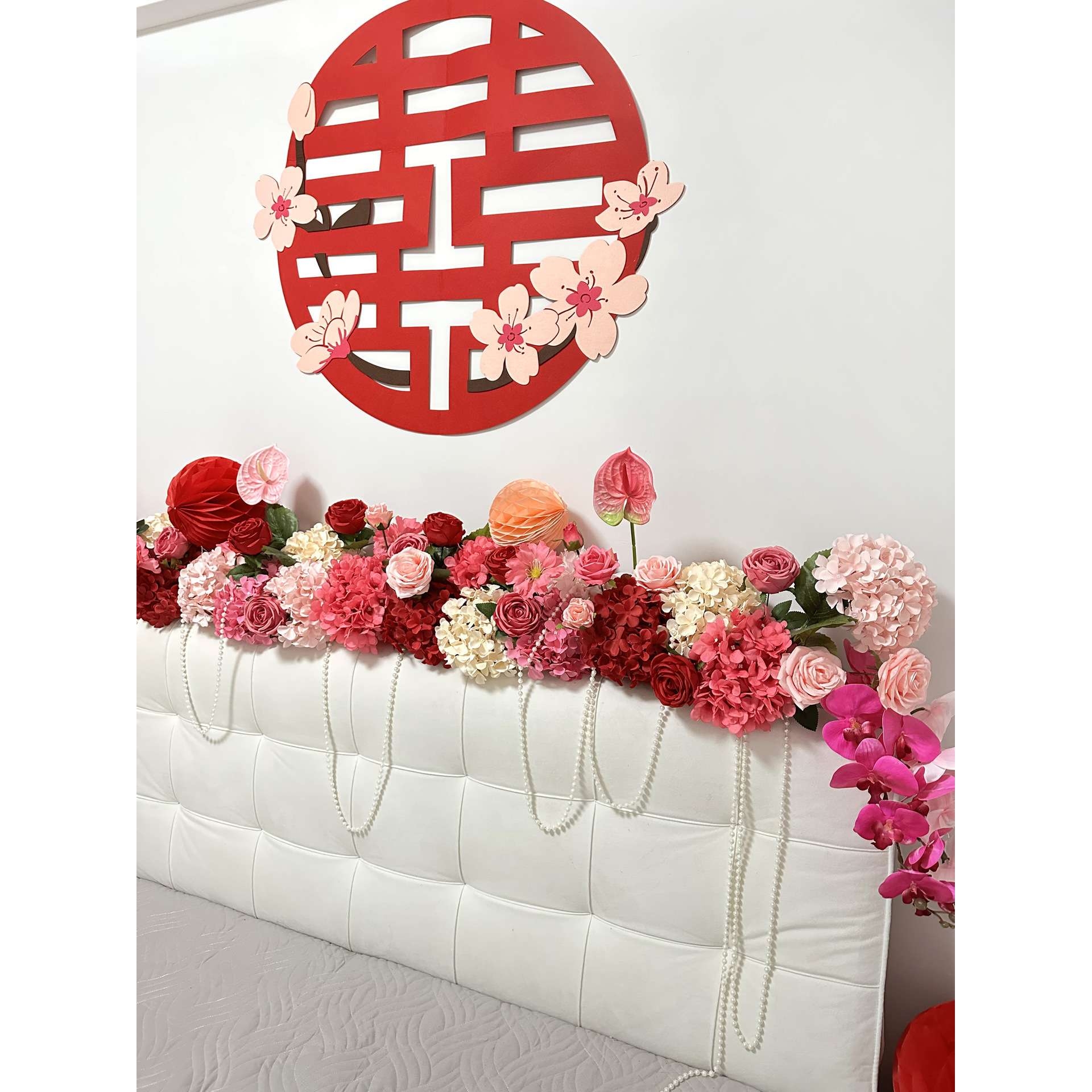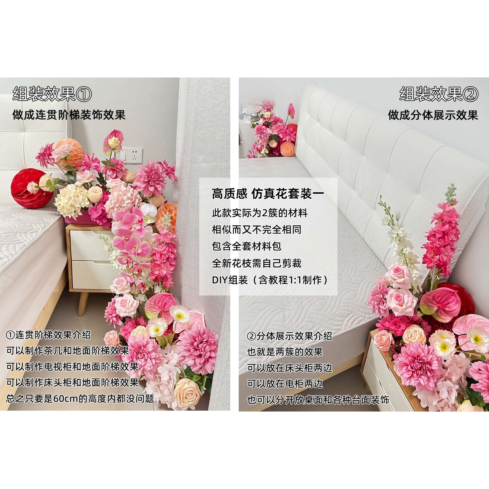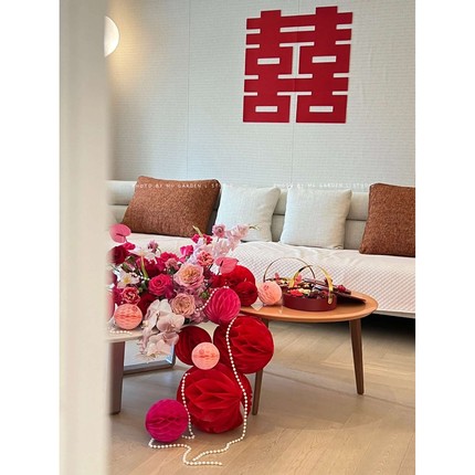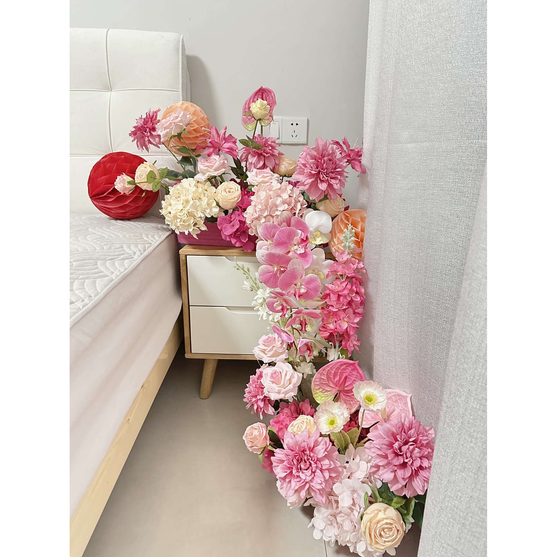 蜂窝球婚房布置纸拉花仿真玫瑰假花绢花瓣花束床头花藤条桌花套装