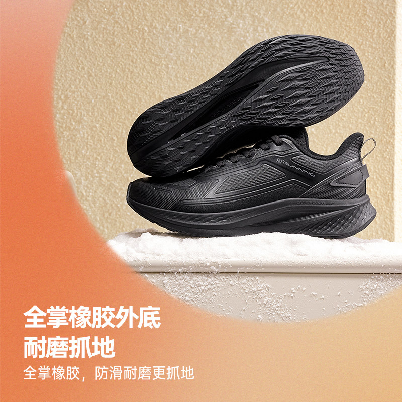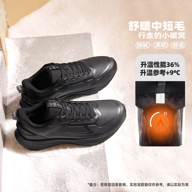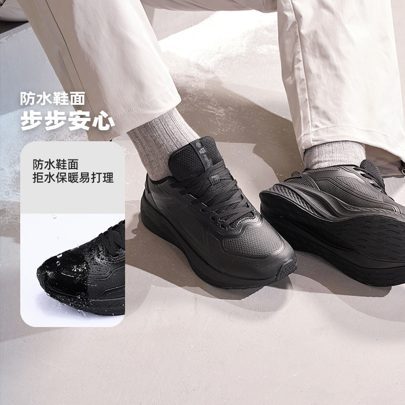 361雨屏男鞋运动鞋男2025冬季新款加绒防泼水跑步鞋黑色休闲跑鞋