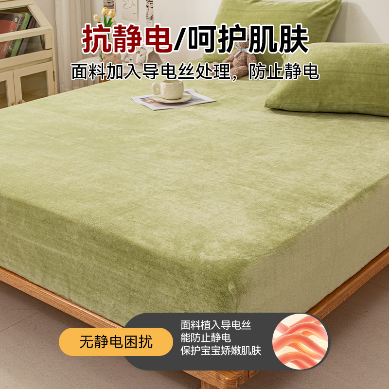 床笠牛奶绒纯色防寒全包冬季加厚保暖三件套床垫保护罩珊瑚绒床单