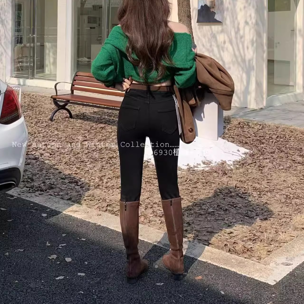 柔柔家秋季植绒高腰显瘦小脚裤