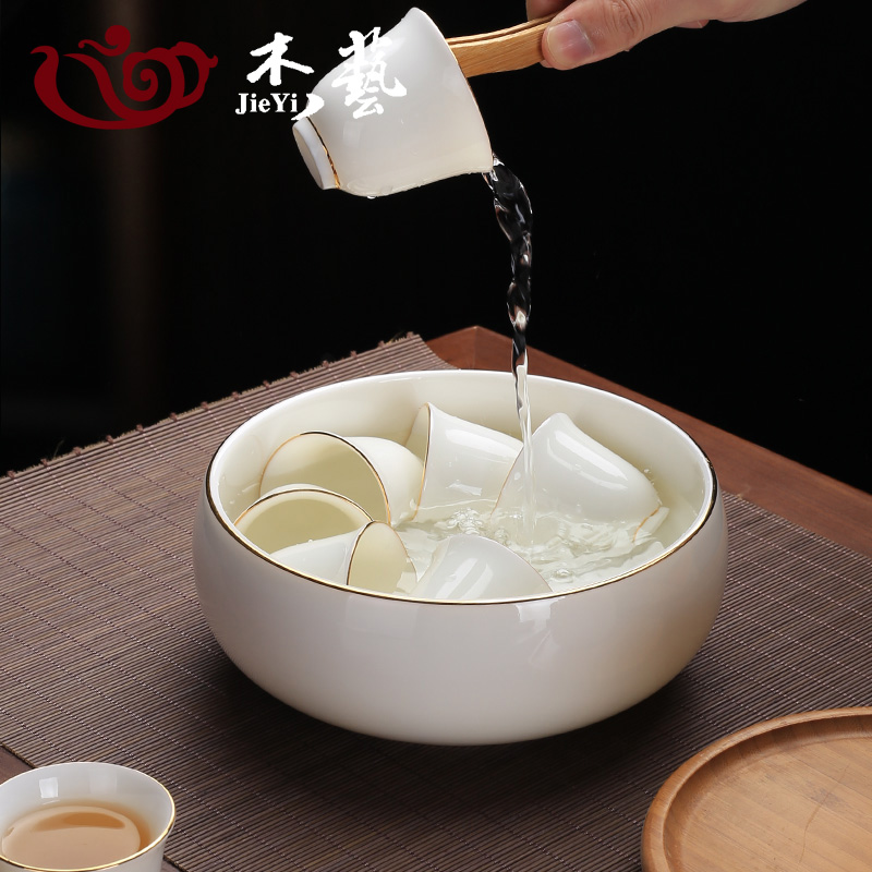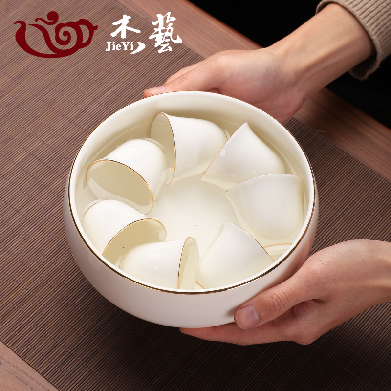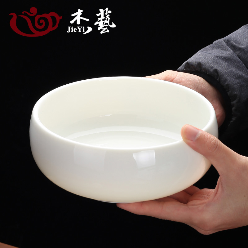 羊脂玉茶洗大号笔洗水盂洗茶杯碗白瓷家用中式功夫洗茶具盆茶渣缸