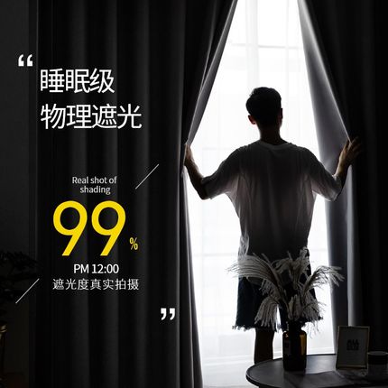 卧室窗帘全遮光202新款免打孔安装挂钩式滑轨客厅成品高级遮阳布