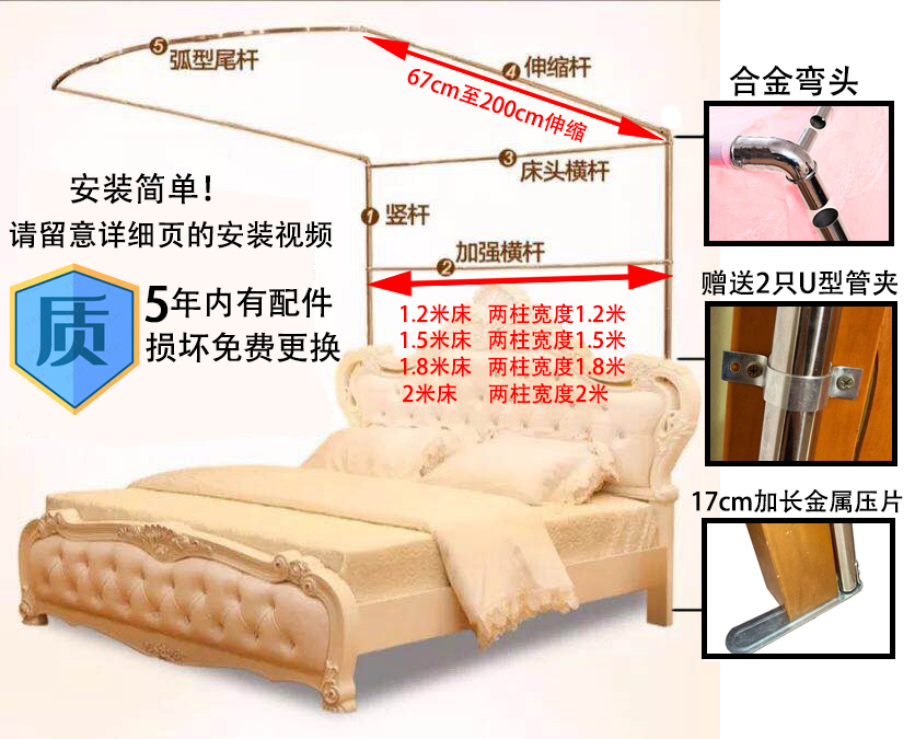 新款伸缩支架不锈钢支架家用简易单购买单独购买蚊帐杆1.5m1.8米