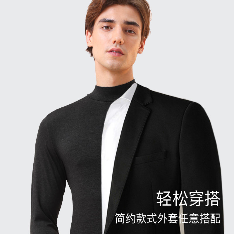 半高领秋衣男款上衣无痕打底衫长袖T恤莫代尔男士保暖内衣秋冬季