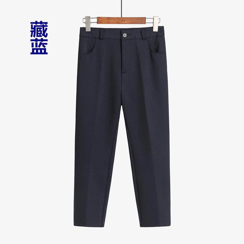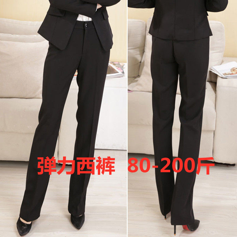 200斤胖mm弹力西裤女直筒藏蓝职业裤春秋大码九分工作裤