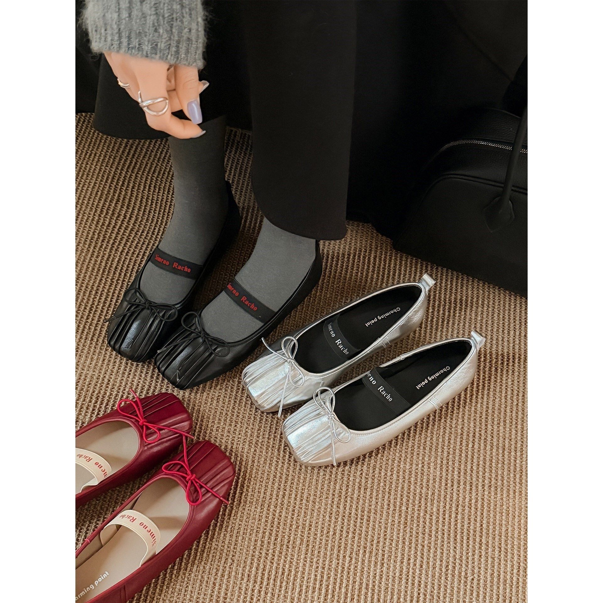 欧洲站法式蝴蝶结玛丽珍鞋女2026春新款一字带浅口平底芭蕾舞单鞋