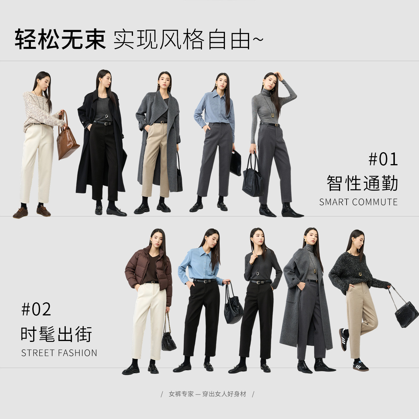 娅丽达新款加厚直筒裤女秋冬仿毛呢裤子黑色休闲裤白色宽松哈伦裤