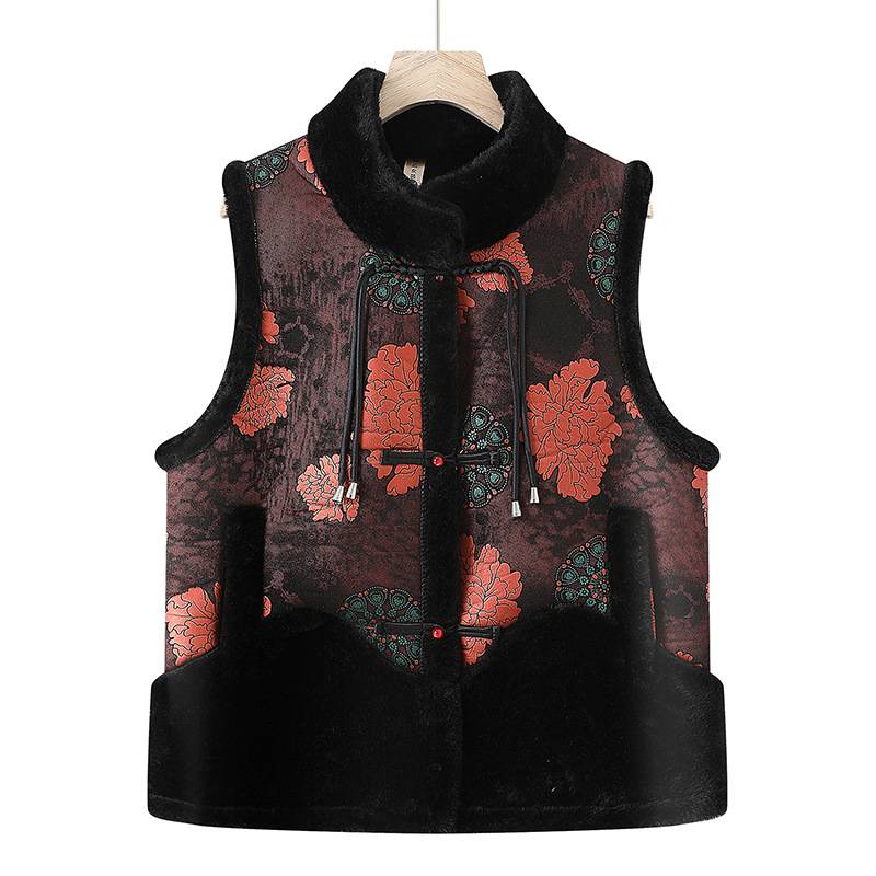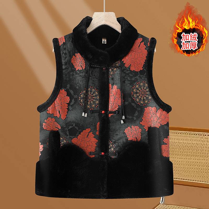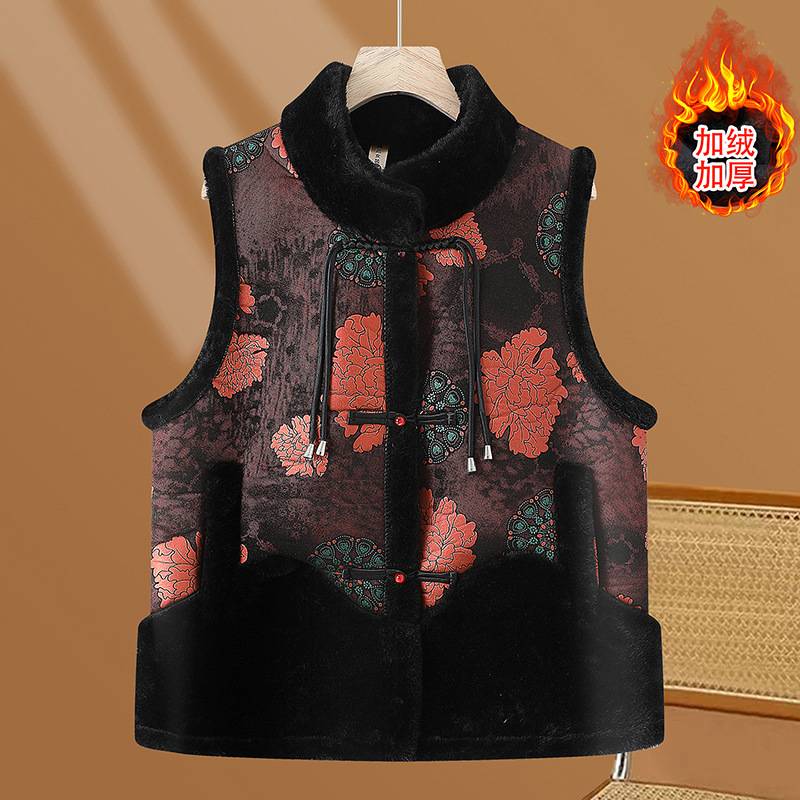 商场品牌奶奶冬装中国风加绒加厚坎肩马甲妈妈新款背心上衣老年人