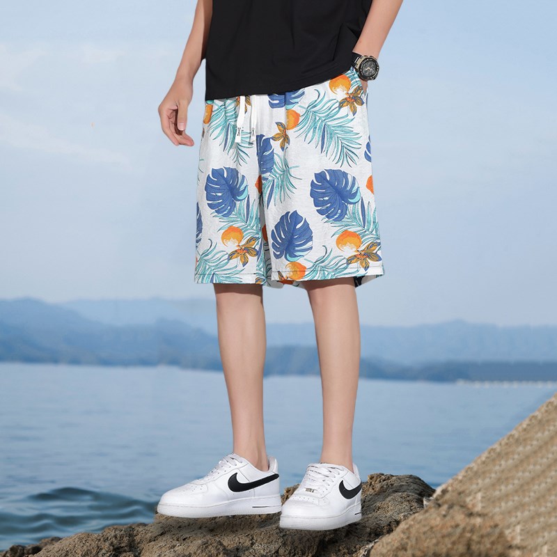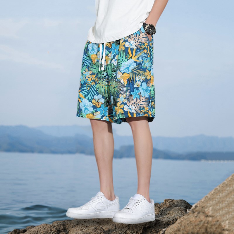 男士花短裤夏季冰丝速干可下水沙滩裤三亚海边泳裤大码五分大裤衩
