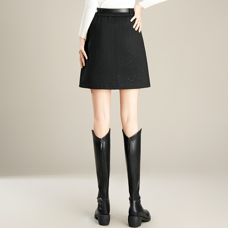 时尚a字短裙女秋冬亮片毛呢半身裙2025新款高腰通勤显瘦包臀裙子