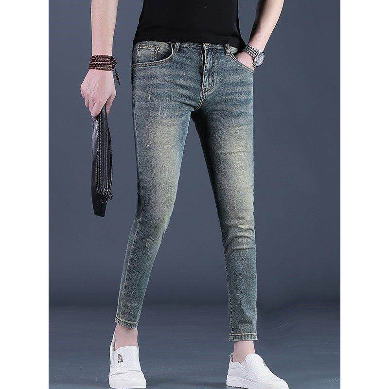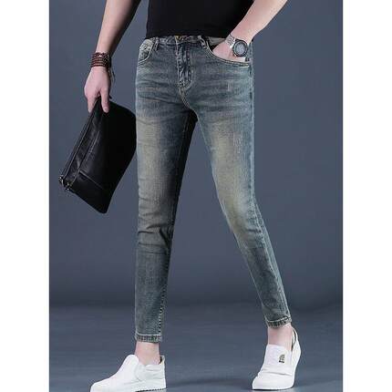 香港九分裤男士牛仔裤2025夏季新款潮流修身瘦腿小脚9分休闲男薄