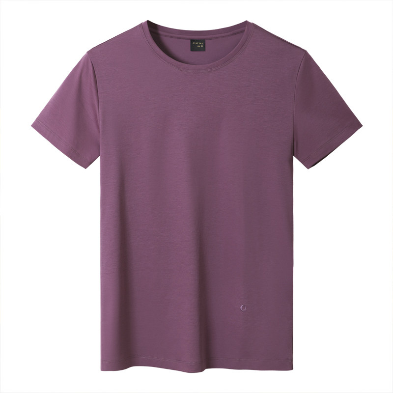 夏季丝光棉男士短袖圆领T恤冰丝纯棉半袖体恤衫2025中年男装新款
