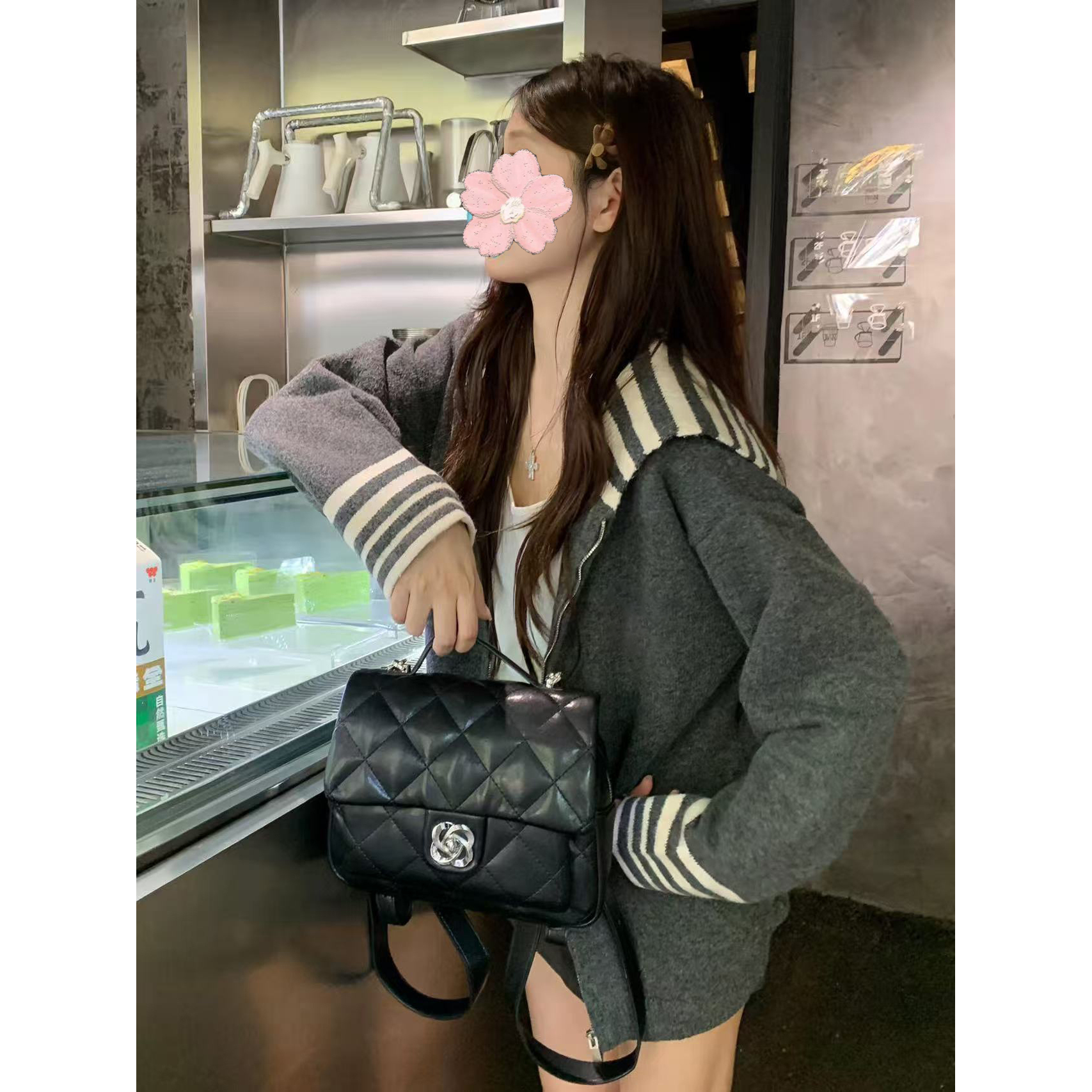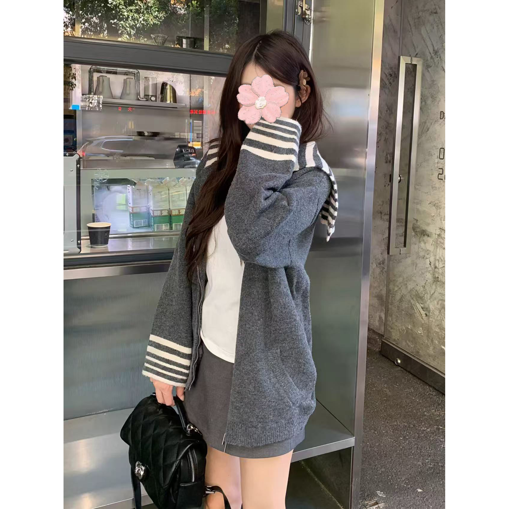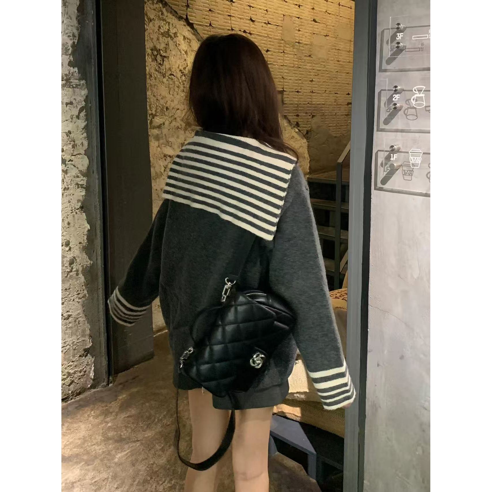 秋冬海军领条纹针织毛衣开衫学院慵懒风软糯复古宽松外套ins上衣