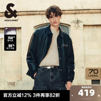 杰克琼斯2024新款秋冬季轻薄衬衫羽绒服男士PU皮外套夹克短款男装