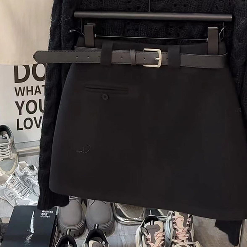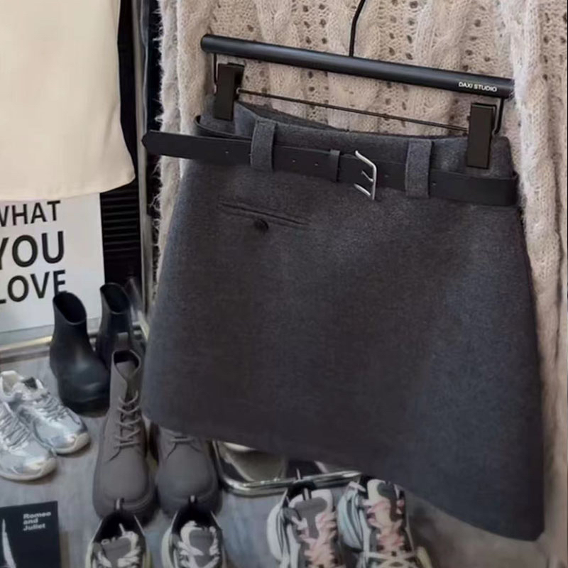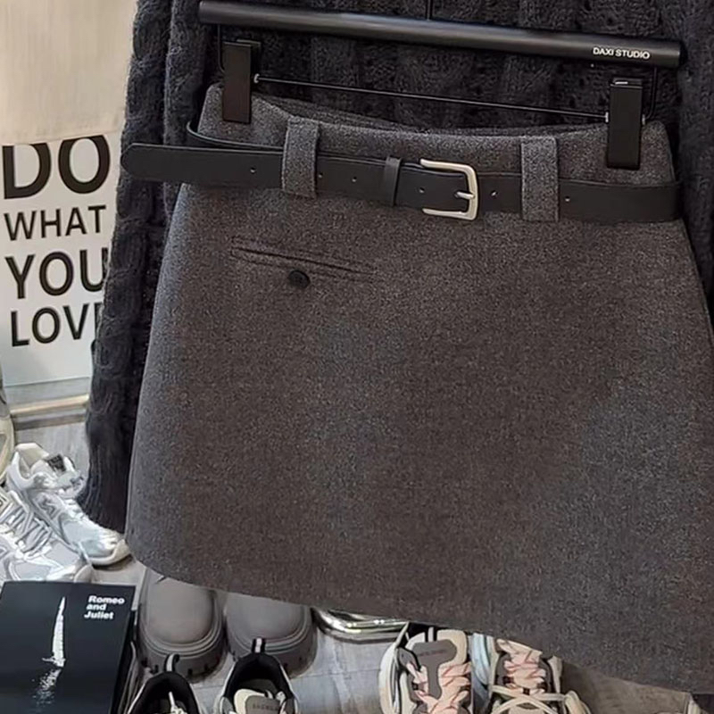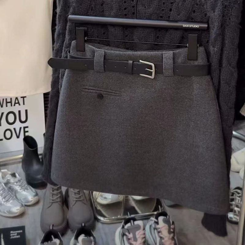 十三行西装短裙女2025秋冬新款高腰短款毛呢A字包臀半身裙潮