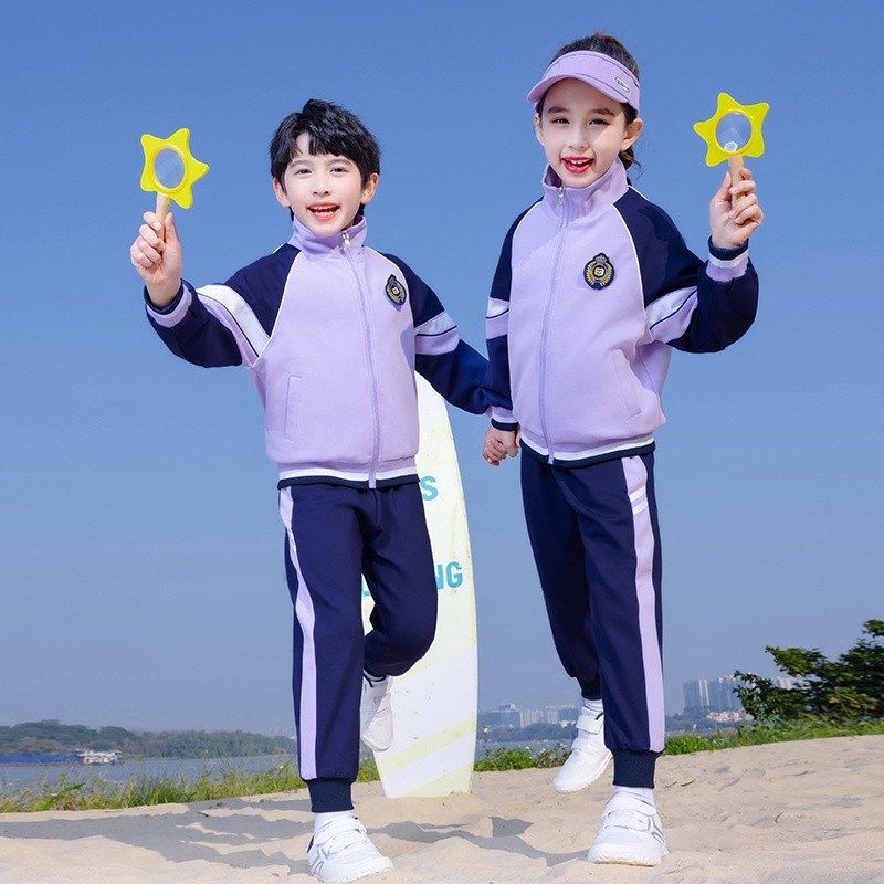中小学生校服套装春夏秋装新学院风紫色幼儿园园服儿童班服四件套