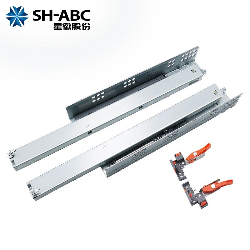 H-C星徽抽屉导轨托底三节轨阻尼缓冲反弹滑轨五金滑道