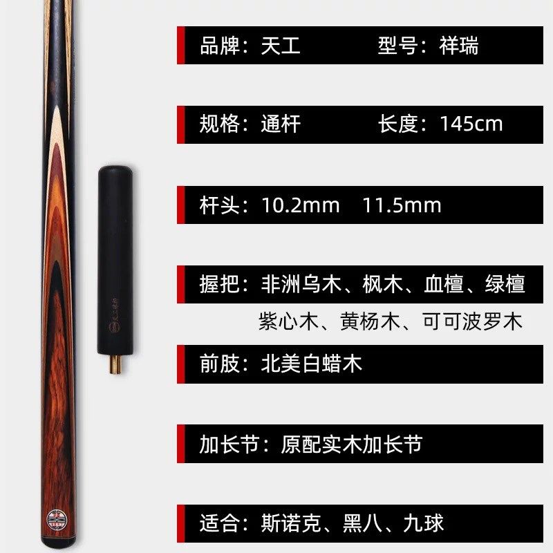 天工台球杆d天工祥瑞小头杆 一体通杆中式黑8八白蜡木手工桌球杆