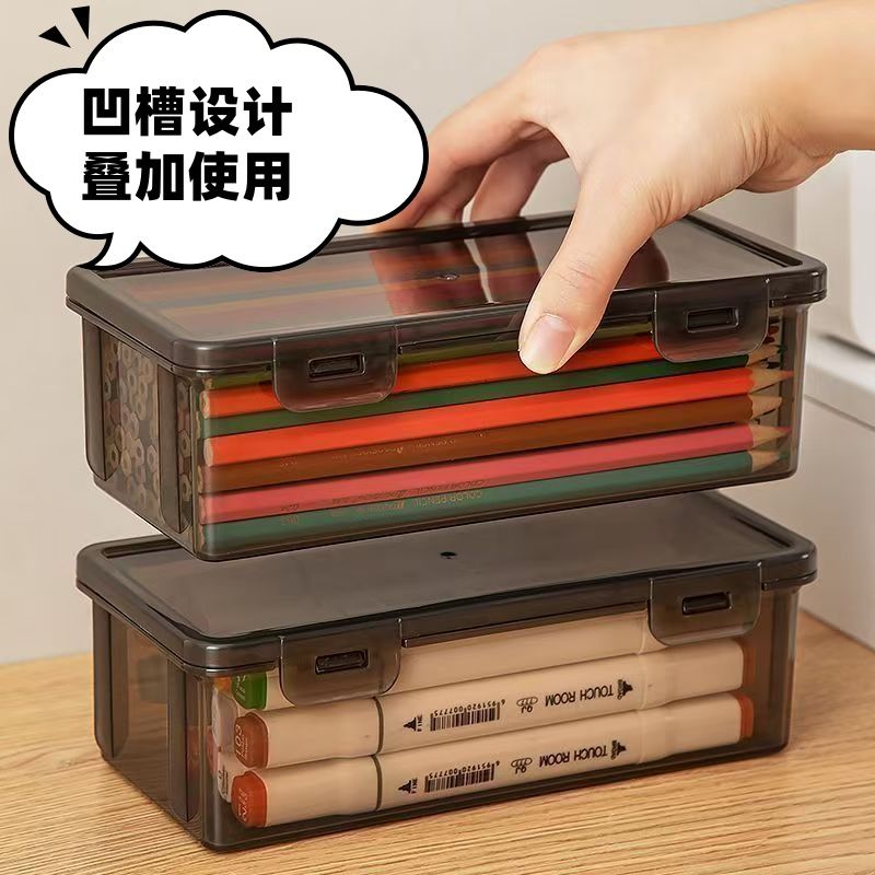 铅笔收纳盒大容量透明文具盒收纳笔筒装彩铅儿童蜡笔绘桌面收纳盒