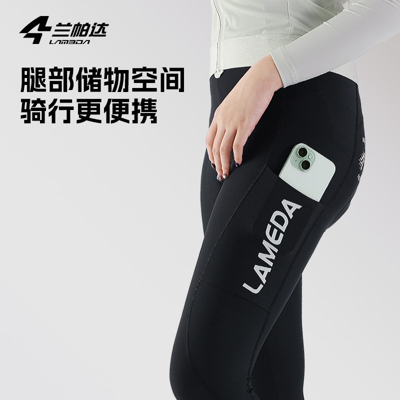 兰帕达 双箭头骑行裤UPF50+女带口袋长裤背带裤秋夏季公路自行车