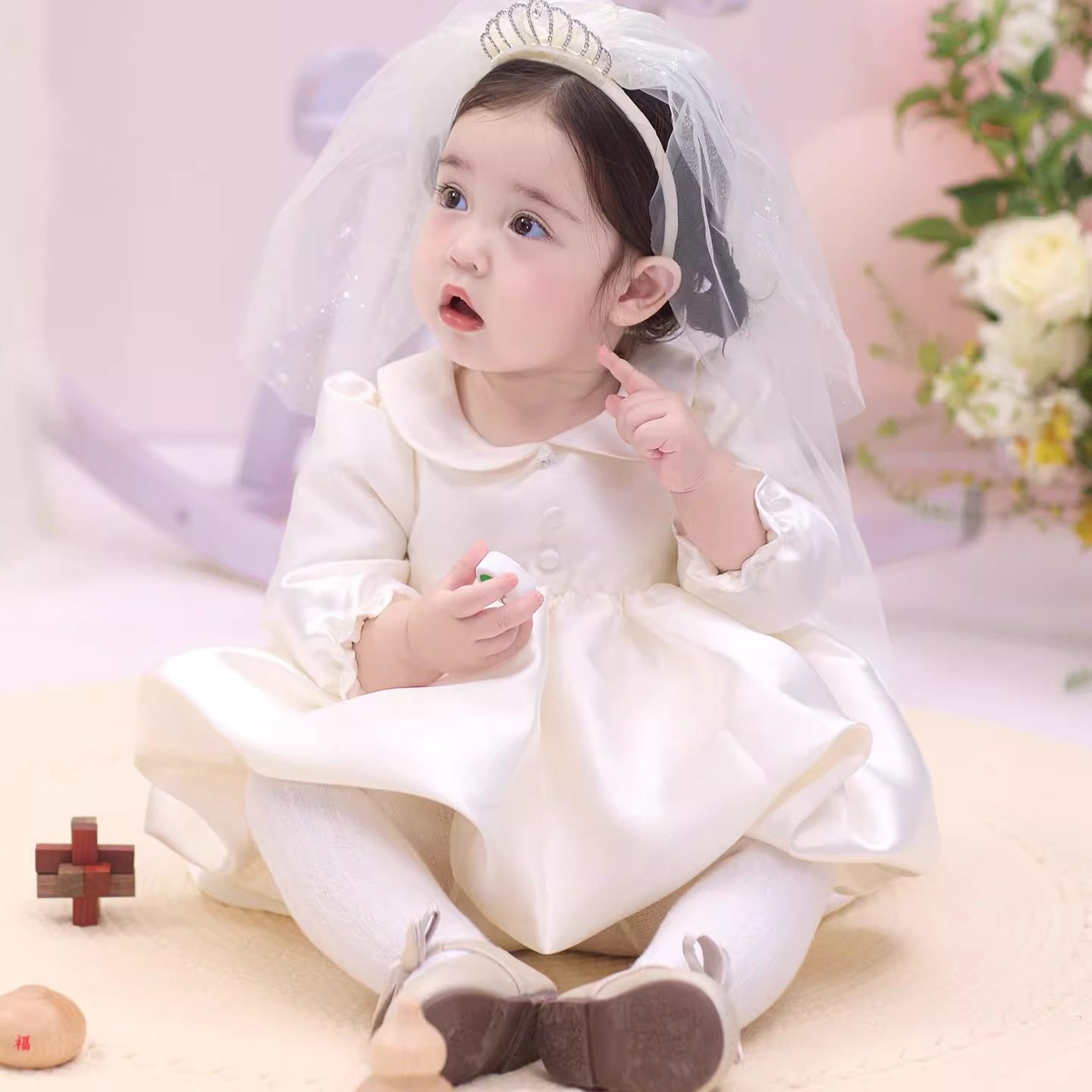 女宝宝周岁公主裙生日抓周礼服花童婚纱蓬蓬裙秋冬新款高端连衣裙