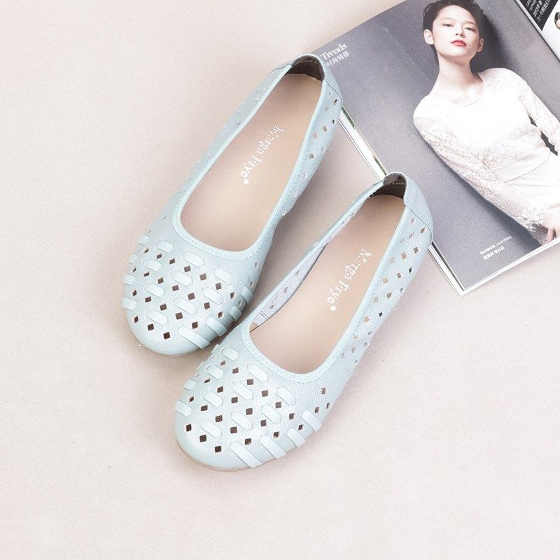 春夏真皮软底包头洞洞鞋平底防滑特大码镂空凉鞋舒适中老年妈妈鞋