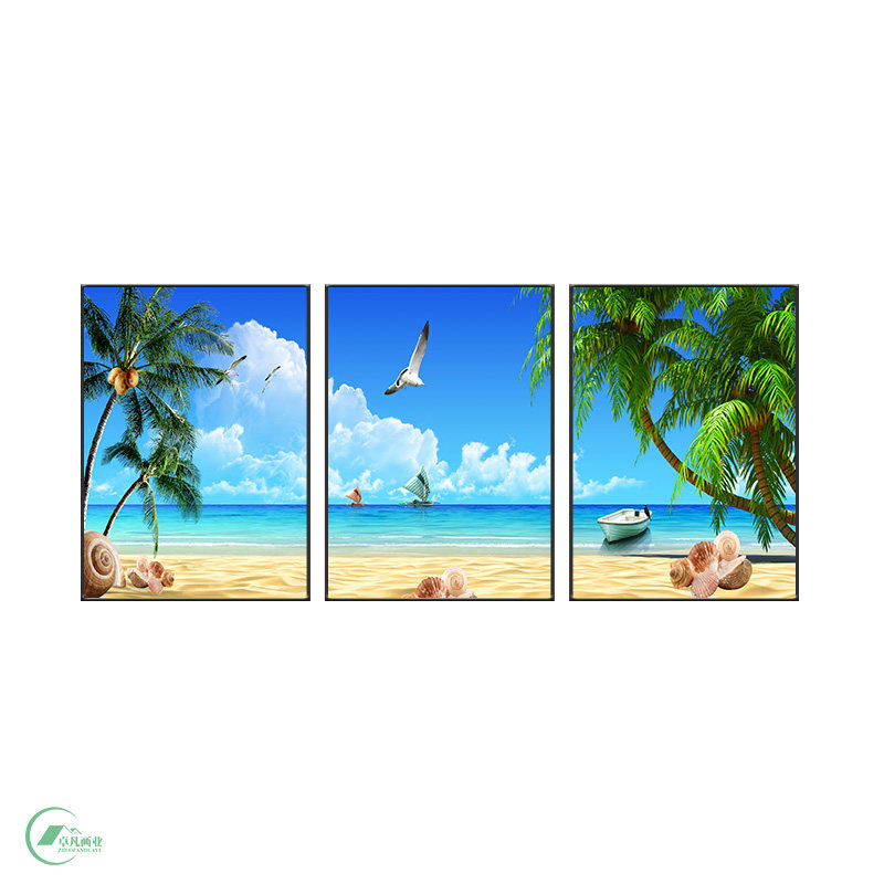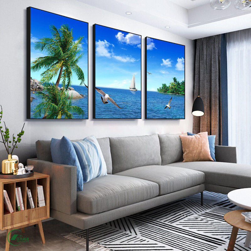 海景客厅装饰画现代简约壁画沙发背景简欧挂画风景墙面大气三联画
