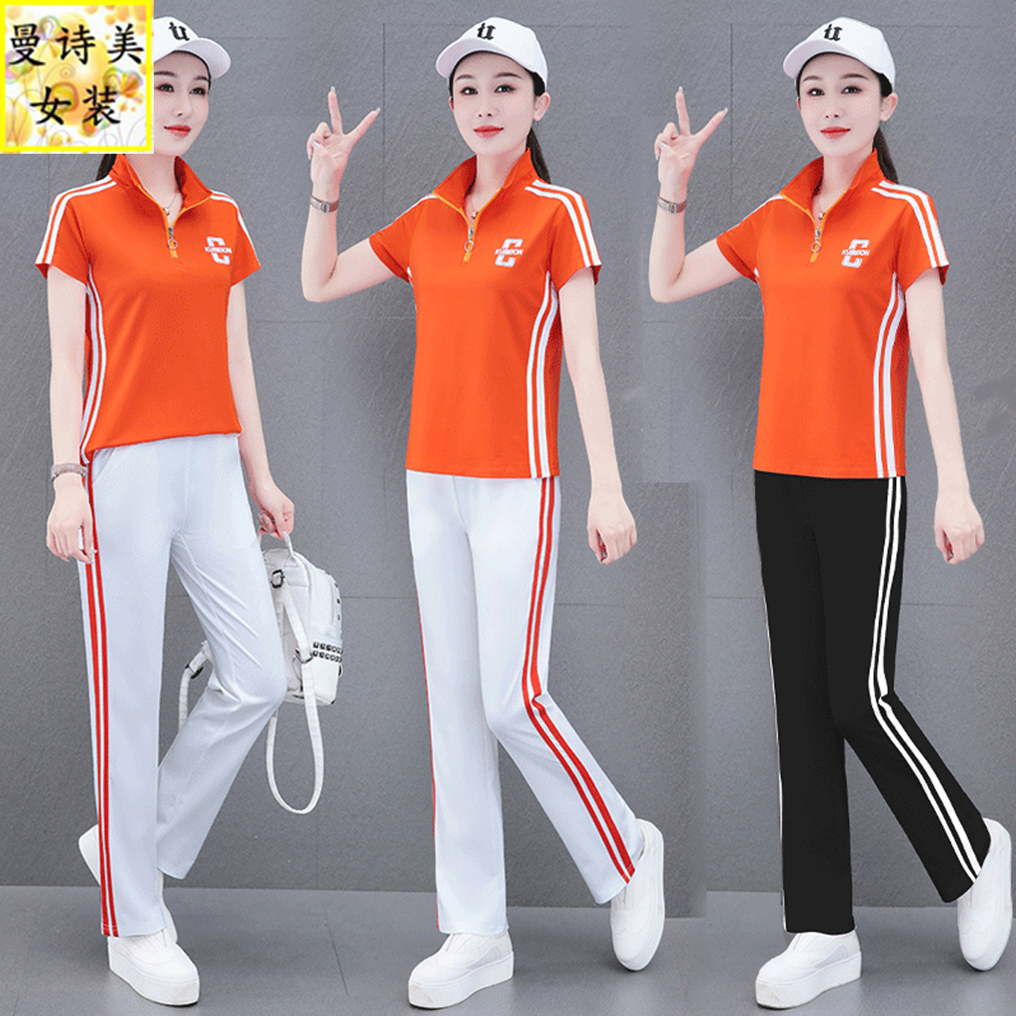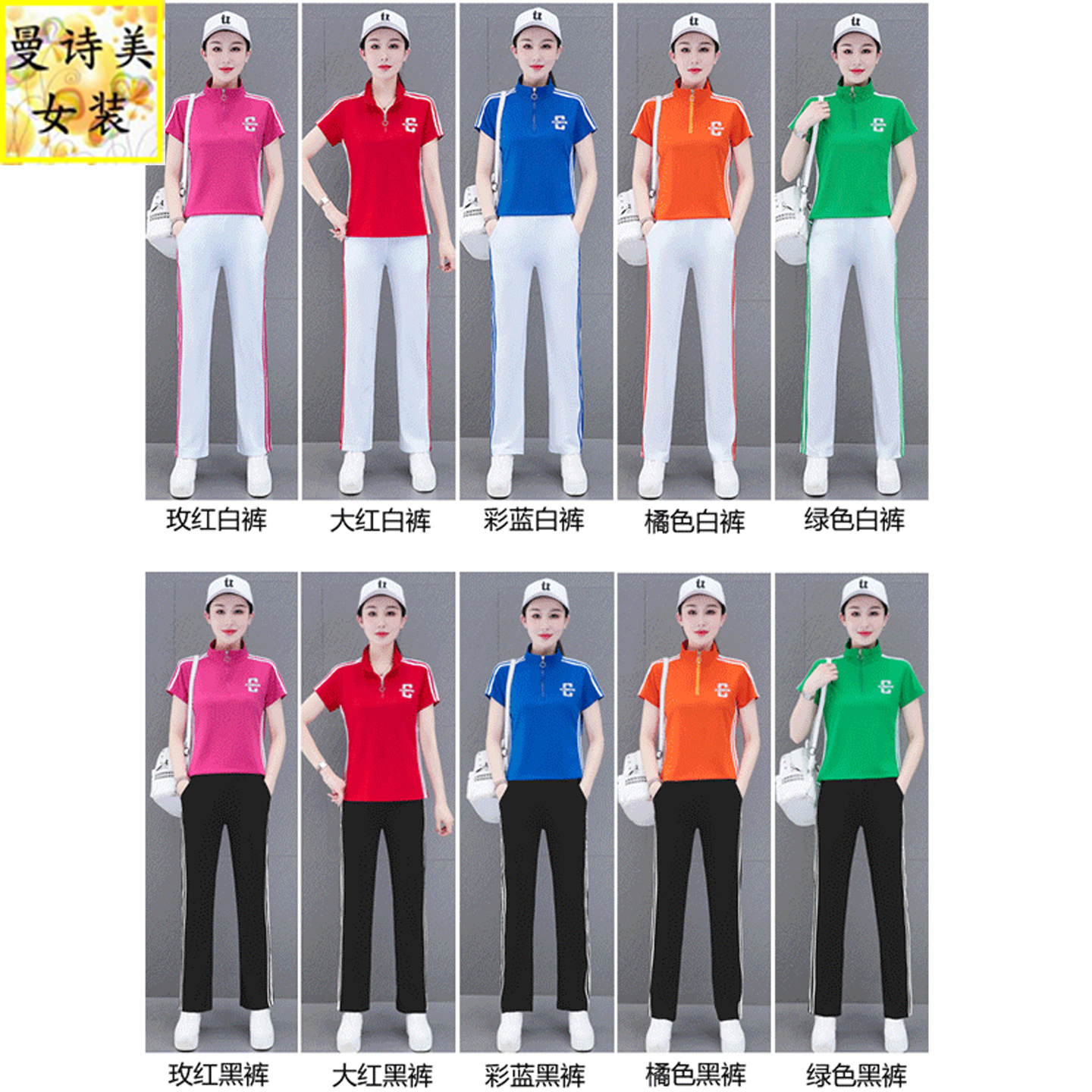 冰瓷棉立领跳舞运动服套装女夏季2025新款宽松休闲时尚洋气两件套